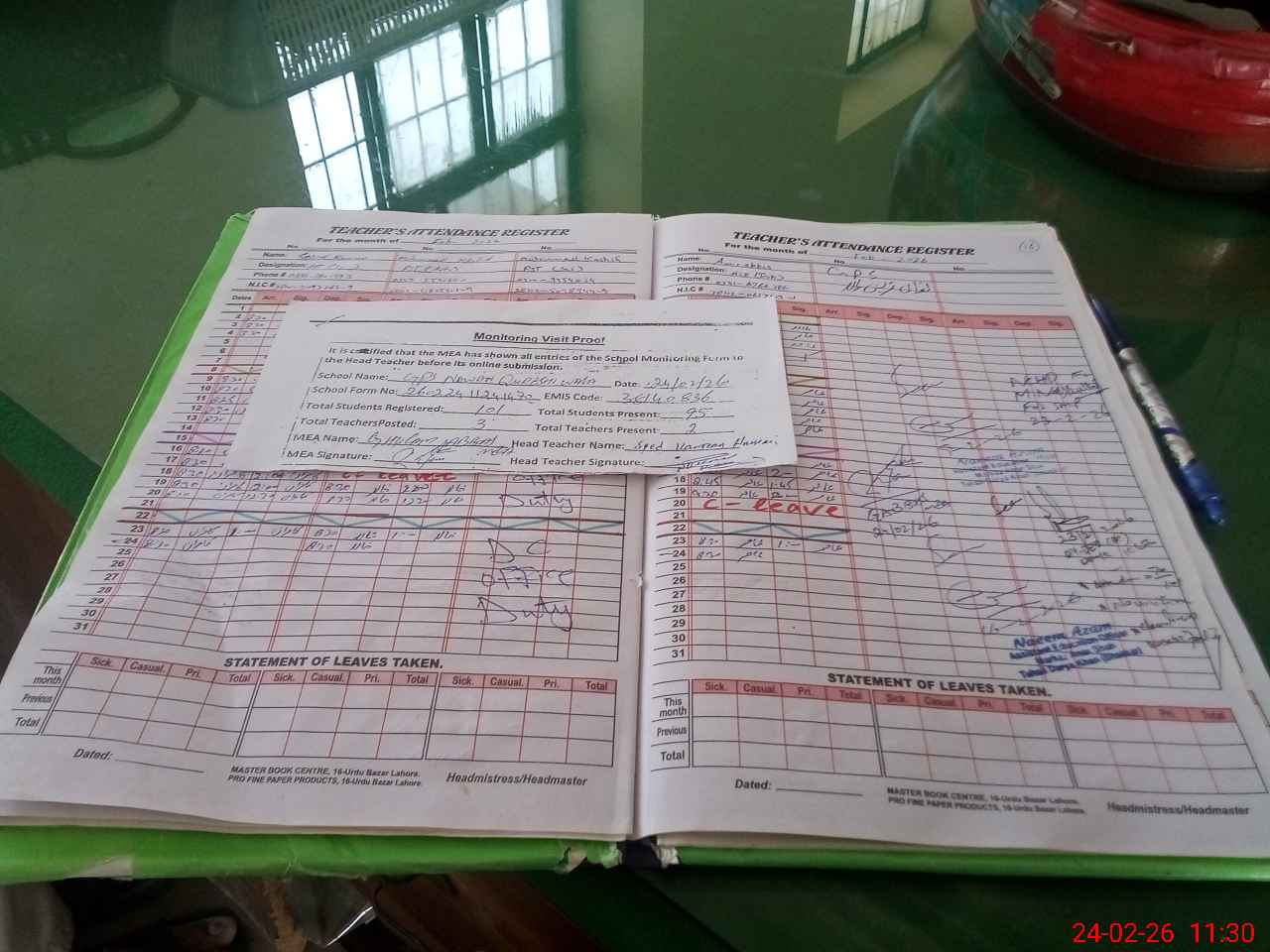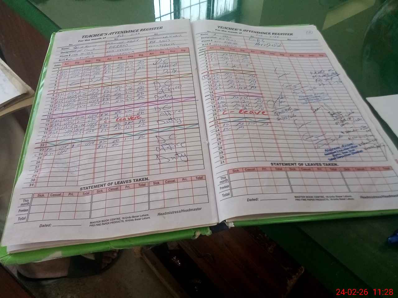 | Remarks (Use Separate Page if Required): last seen by Name Shahzad Fazal Designation DDEO Date 23 Feb 2026 | |||||