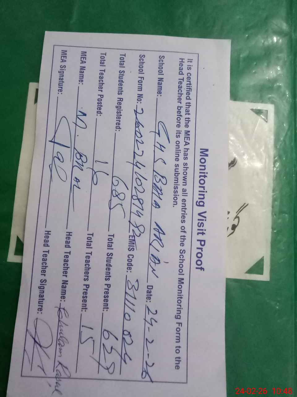 | EMIS Code: 31110024 | Name of School: GHS BALA ARIAN | |||