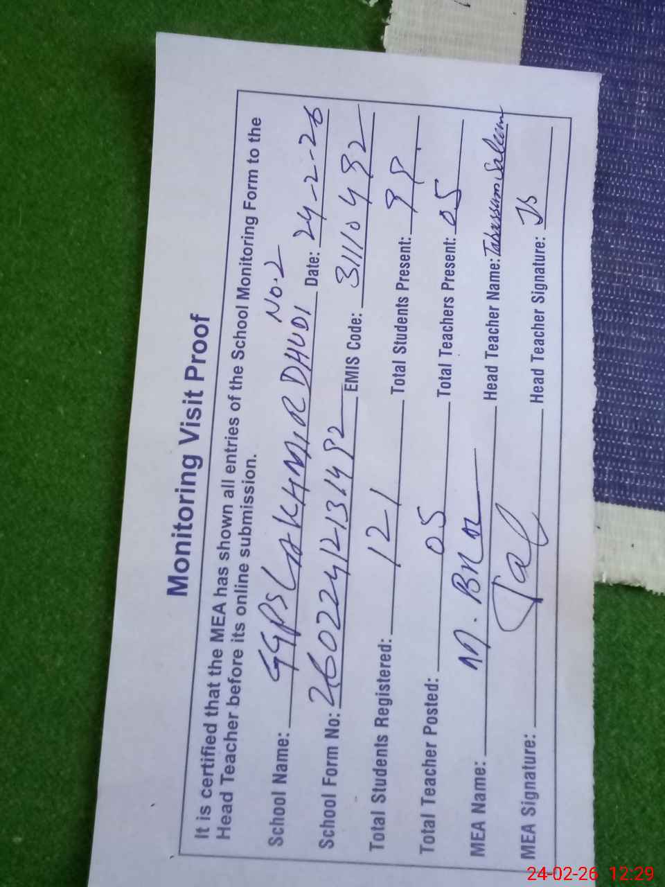| EMIS Code: 31110492 | Name of School: GGPS LAKHMIR DHUDI NO 2 | |||