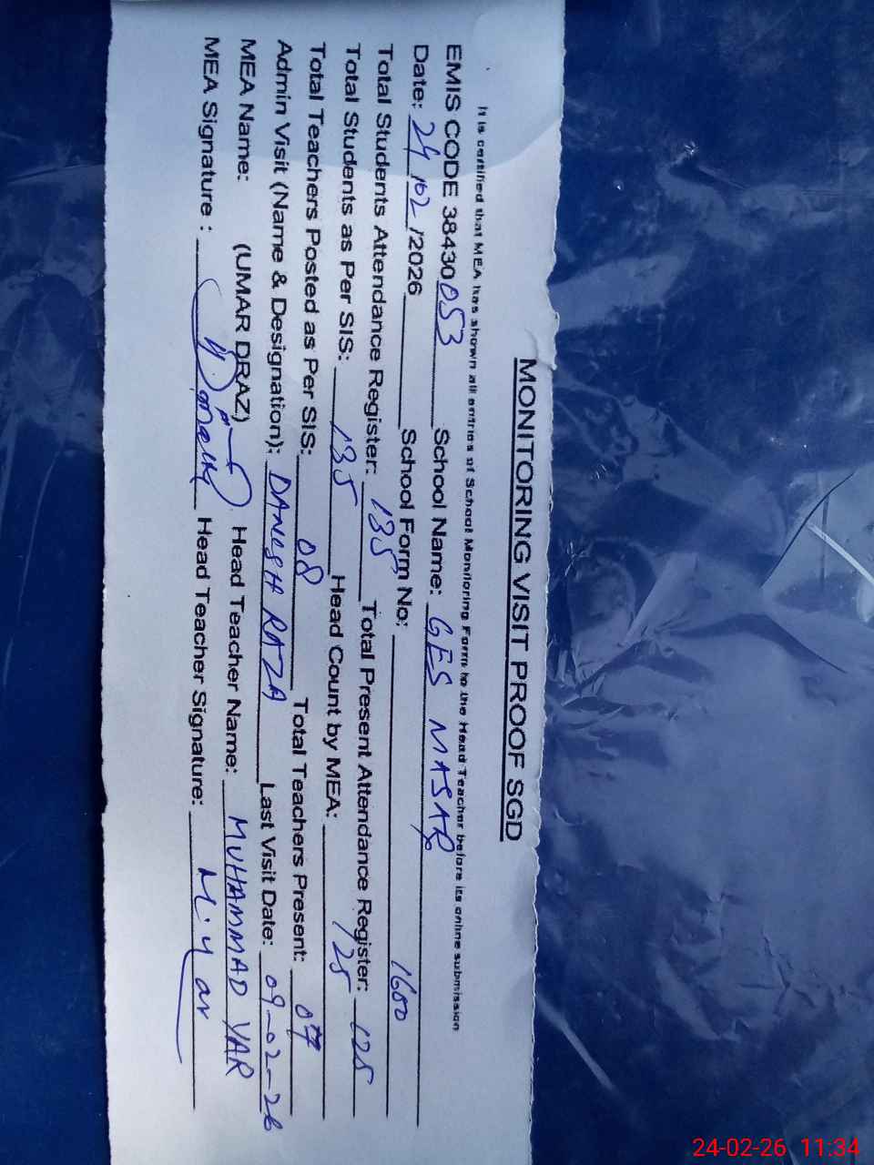 | Certified that this School was Inspected by the Undersigned MEA/DMO Today and the Information Stated Above is as Per Record. | |||||
