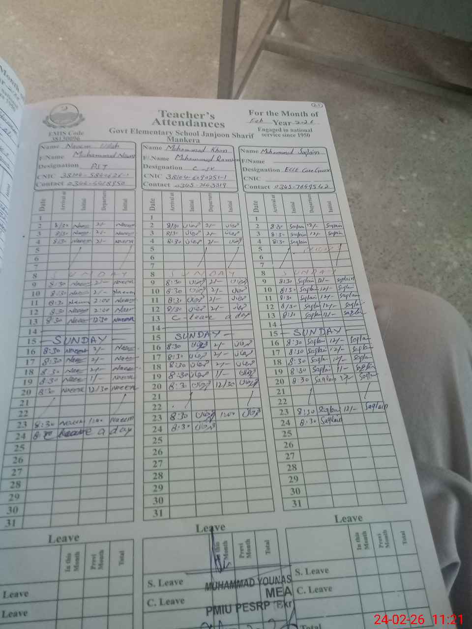 | Name: Sh**** Al**** Designation: (School Headmaster's/Headmistress's) S S T Phone/Cell Number: 03**** |