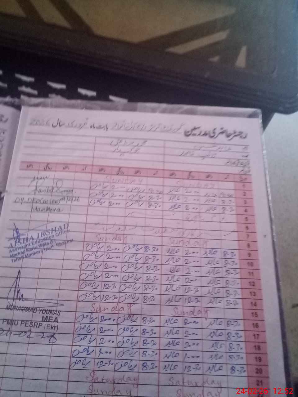 | District: BHAKKAR | Tehsil: MANKERA | Markaz: KARLOO WALA-FEMALE | Level: Middle | |
