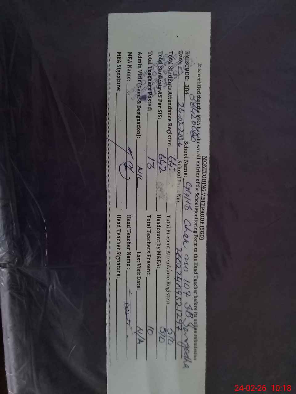 | Certified that this School was Inspected by the Undersigned MEA/DMO Today and the Information Stated Above is as Per Record. | |||||