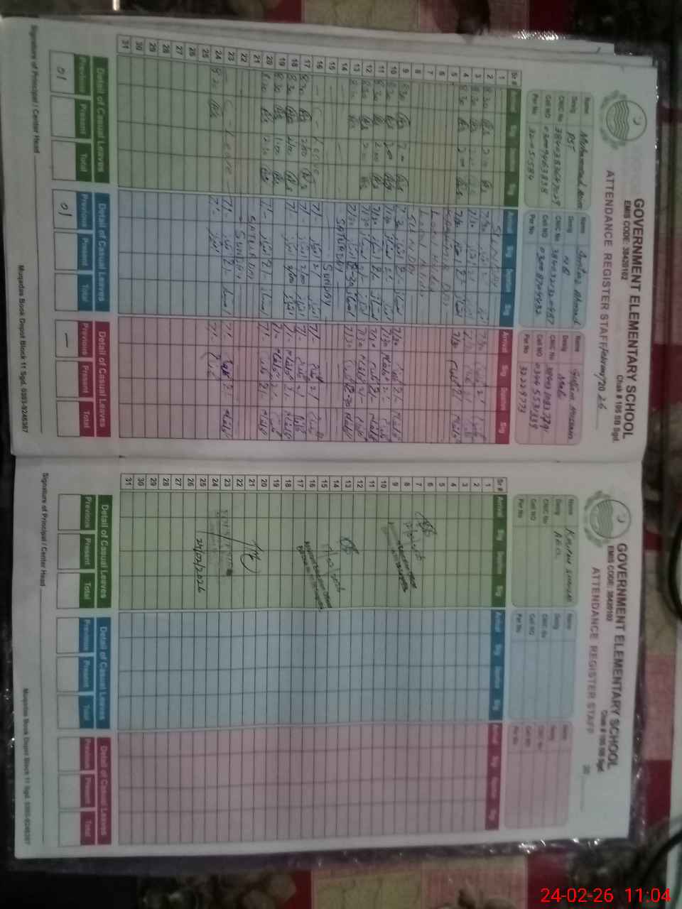 | CNIC | Full Name | Designation | R/C | Absence During Last Calender Month |