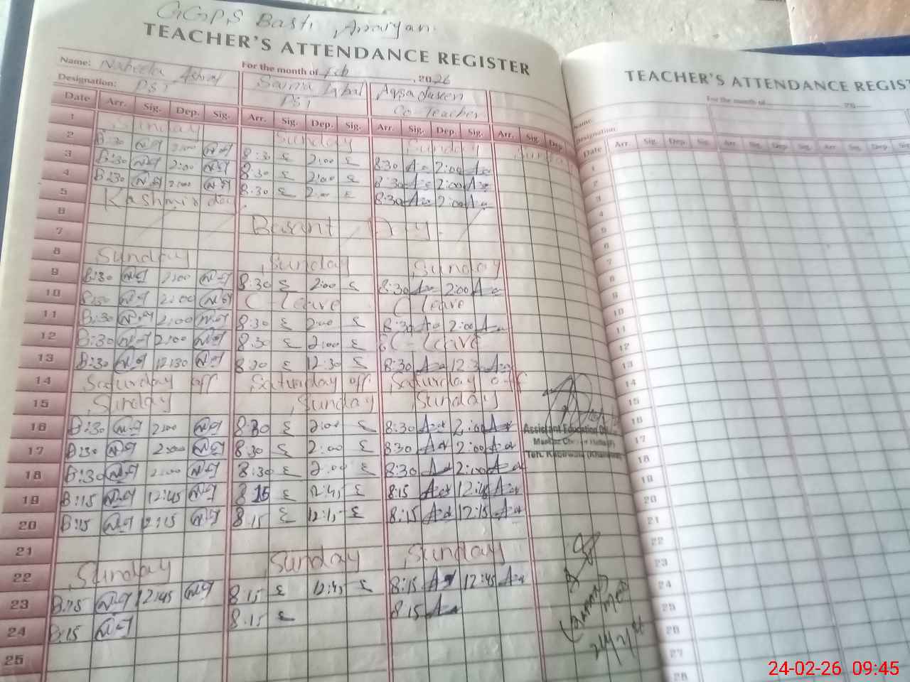 | Attendance Register | Head Teacher | MEA with School | Visit Proof |