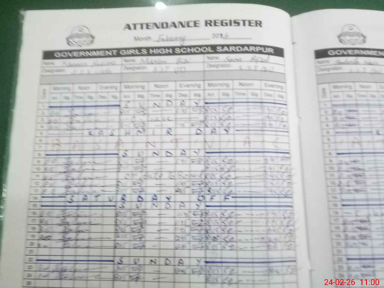 | CNIC | Full Name | Designation | R/C | Absence During Last Calender Month |