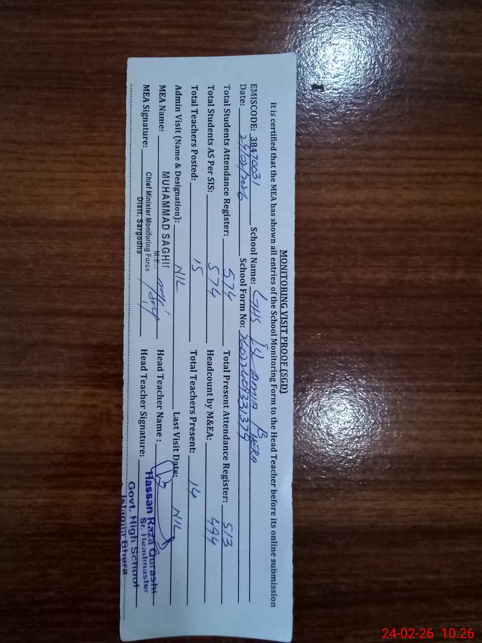 | EMIS Code: 38470031 | Name of School: GHS ISLAMIA BHERA | |||
