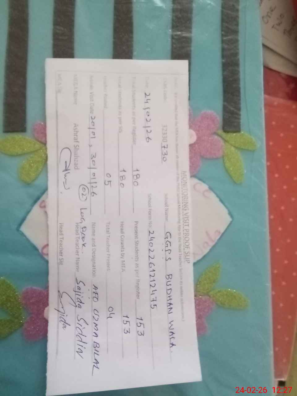 | EMIS Code: 32330730 | Name of School: GGPS BUDHAY WALA | |||