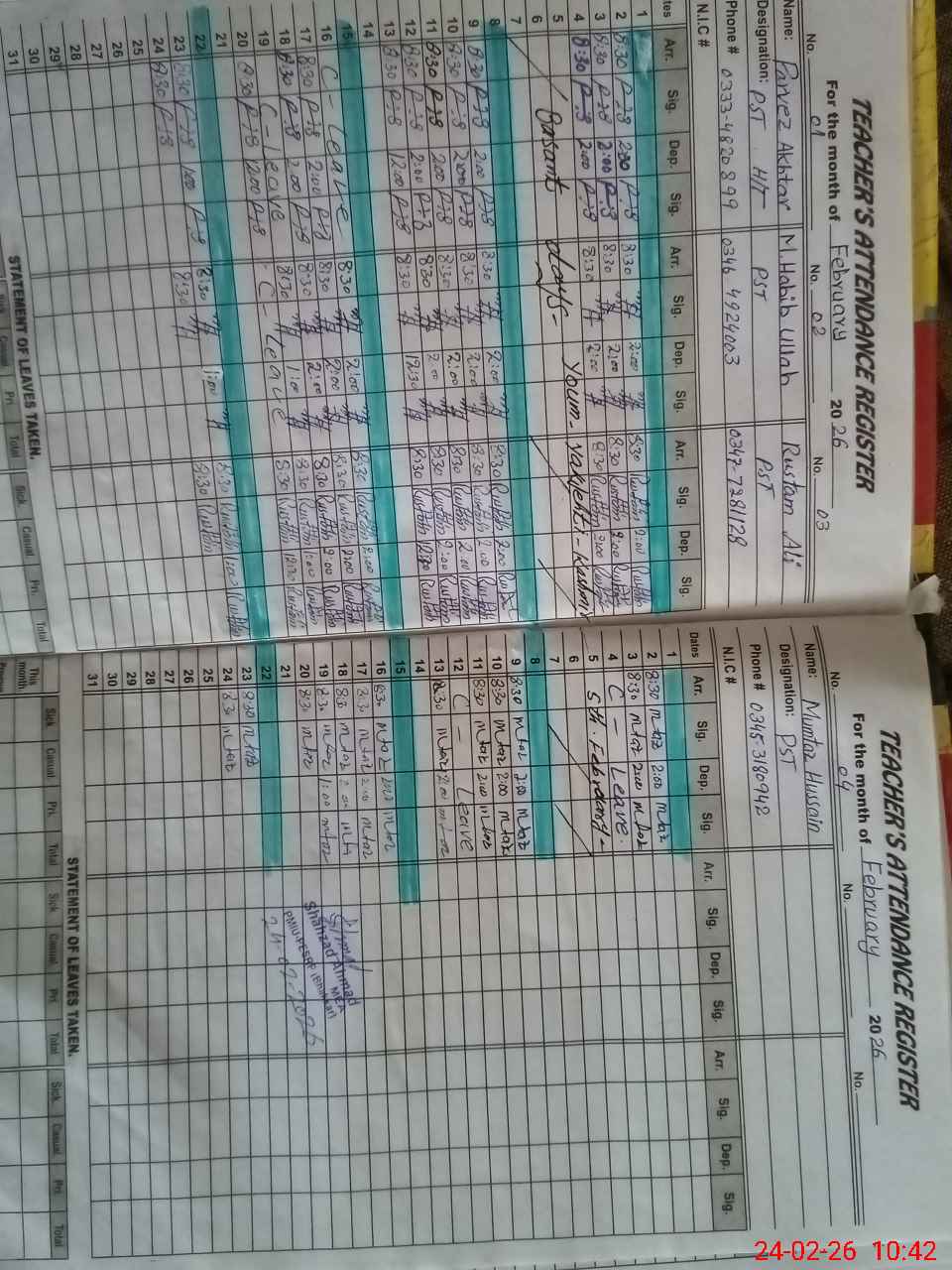 | CNIC | Full Name | Designation | R/C | Absence During Last Calender Month |