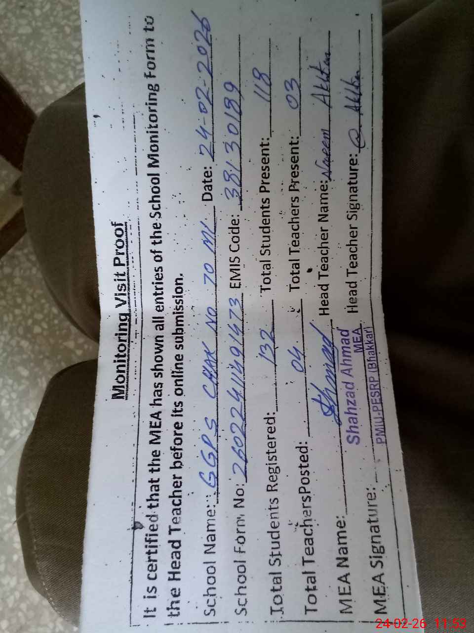 | Certified that this School was Inspected by the Undersigned MEA/DMO Today and the Information Stated Above is as Per Record. | |||||