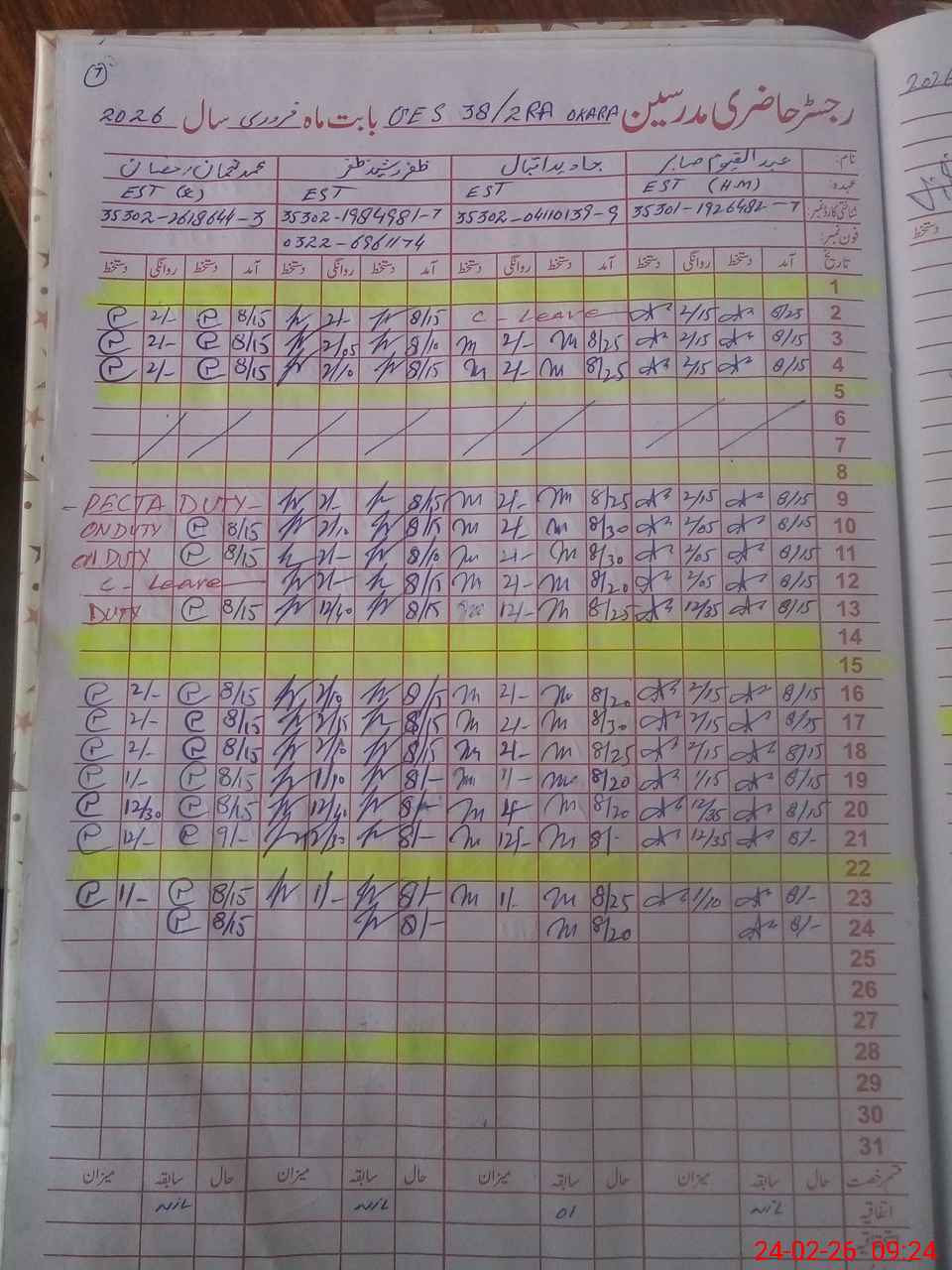 | Leave | Duty | Absent | Maternity | Medical | Ex- Pak |