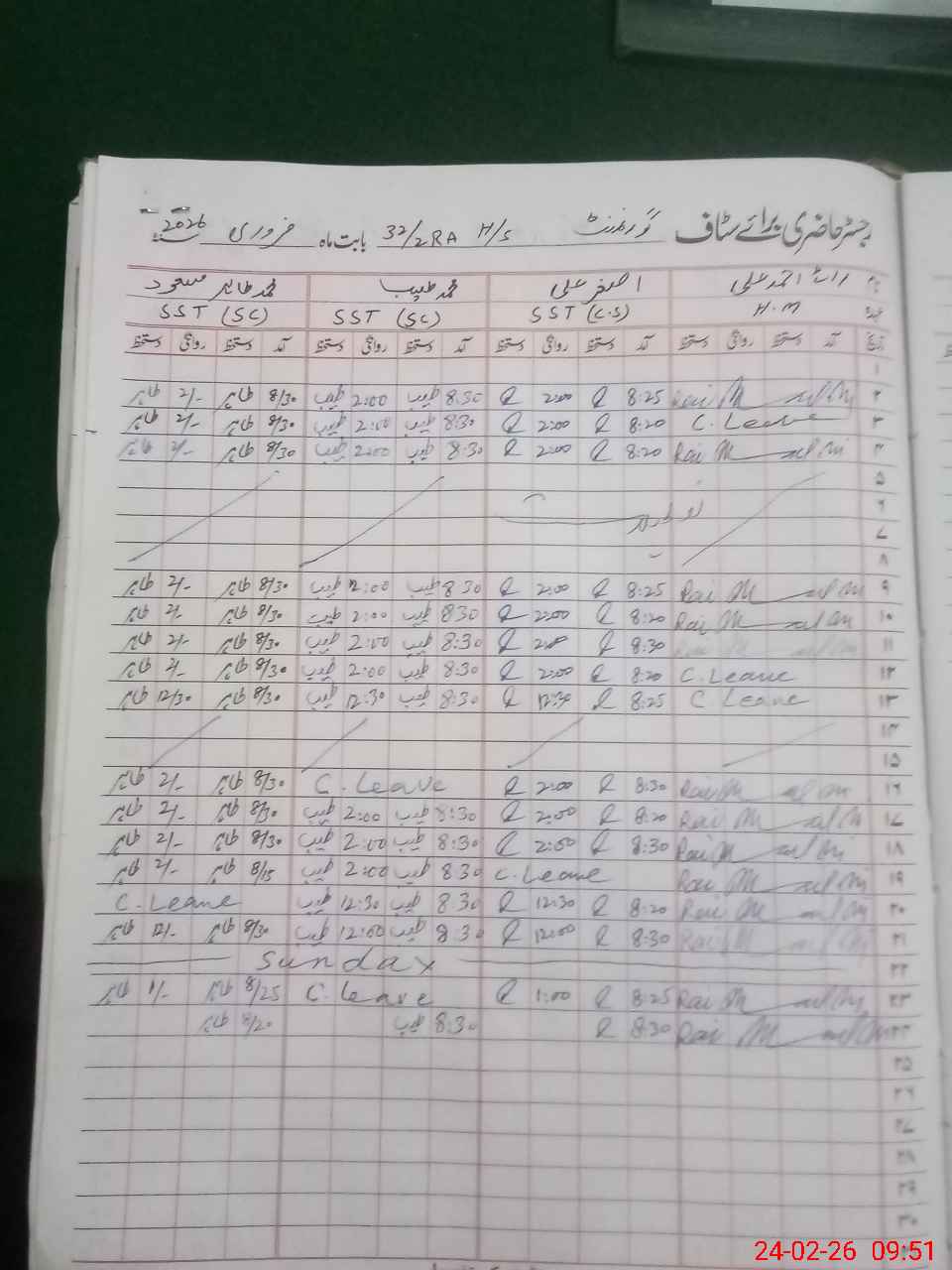 | CNIC | Full Name | Designation | R/C | Absence During Last Calender Month |
