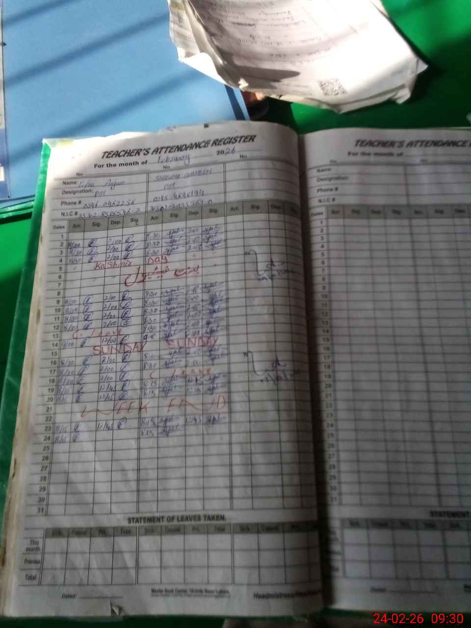 | Remarks (Use Separate Page if Required): STUDENTS ATTANDANC FOUND 109/142 WHILE ON ROZNAMCHA 136 STUDENTS PRESENT 2.DRINKING WATER FOUND NONFUNCTIONAL 3.TOILETS FOUND POOR 4. TWO CLASSROOMS FOUND UNATTENDED, WITHOUT DOOR AND WINDOW, ACCORDING TO THE VIEW OF SECURITY POINT, THEY ARE VERY DANGEROUS. | |||||