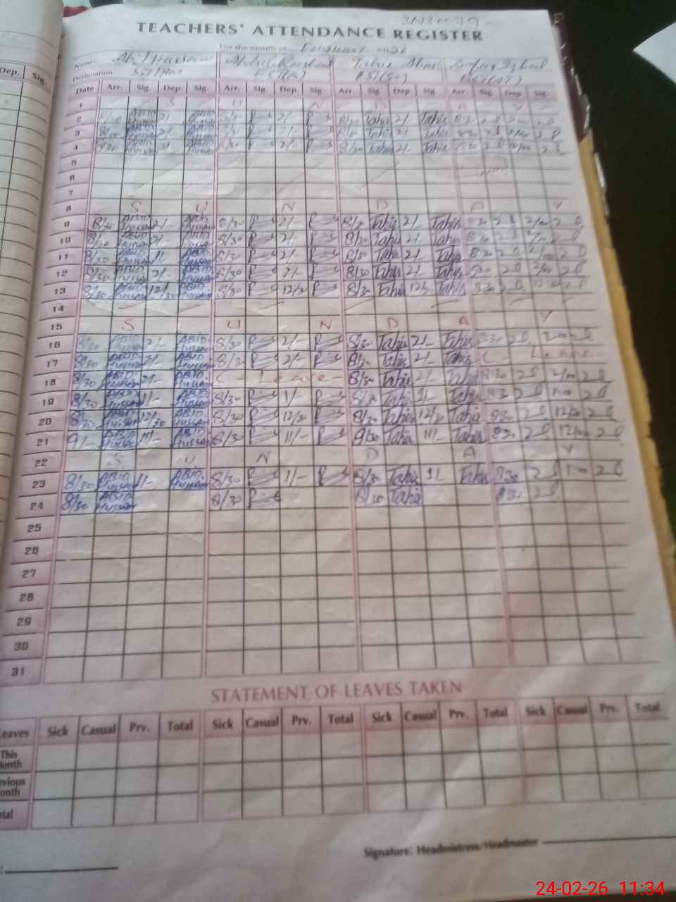 | Leave | Duty | Absent | Maternity | Medical | Ex- Pak |