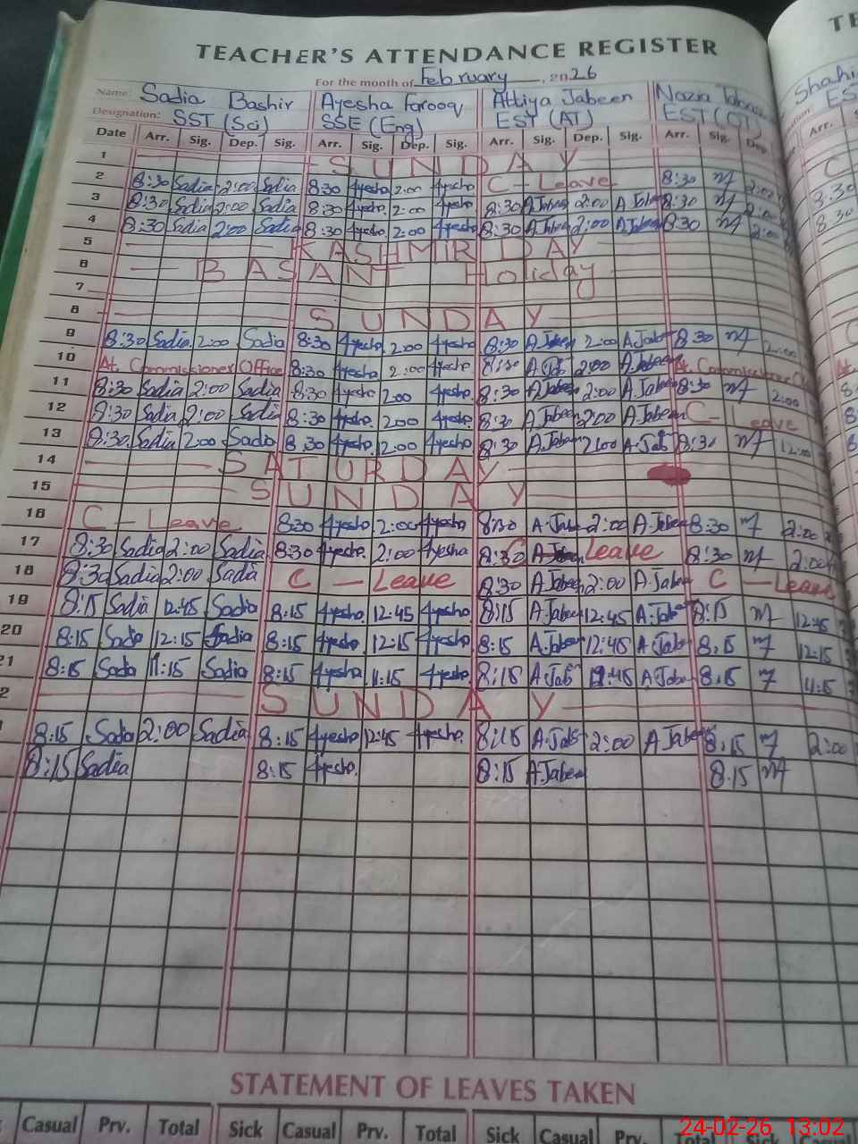 | Leave | Duty | Absent | Maternity | Medical | Ex- Pak |