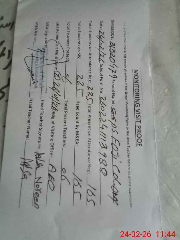 | EMIS Code: 31320479 | Name of School: GGPS FOJI COLONY | |||