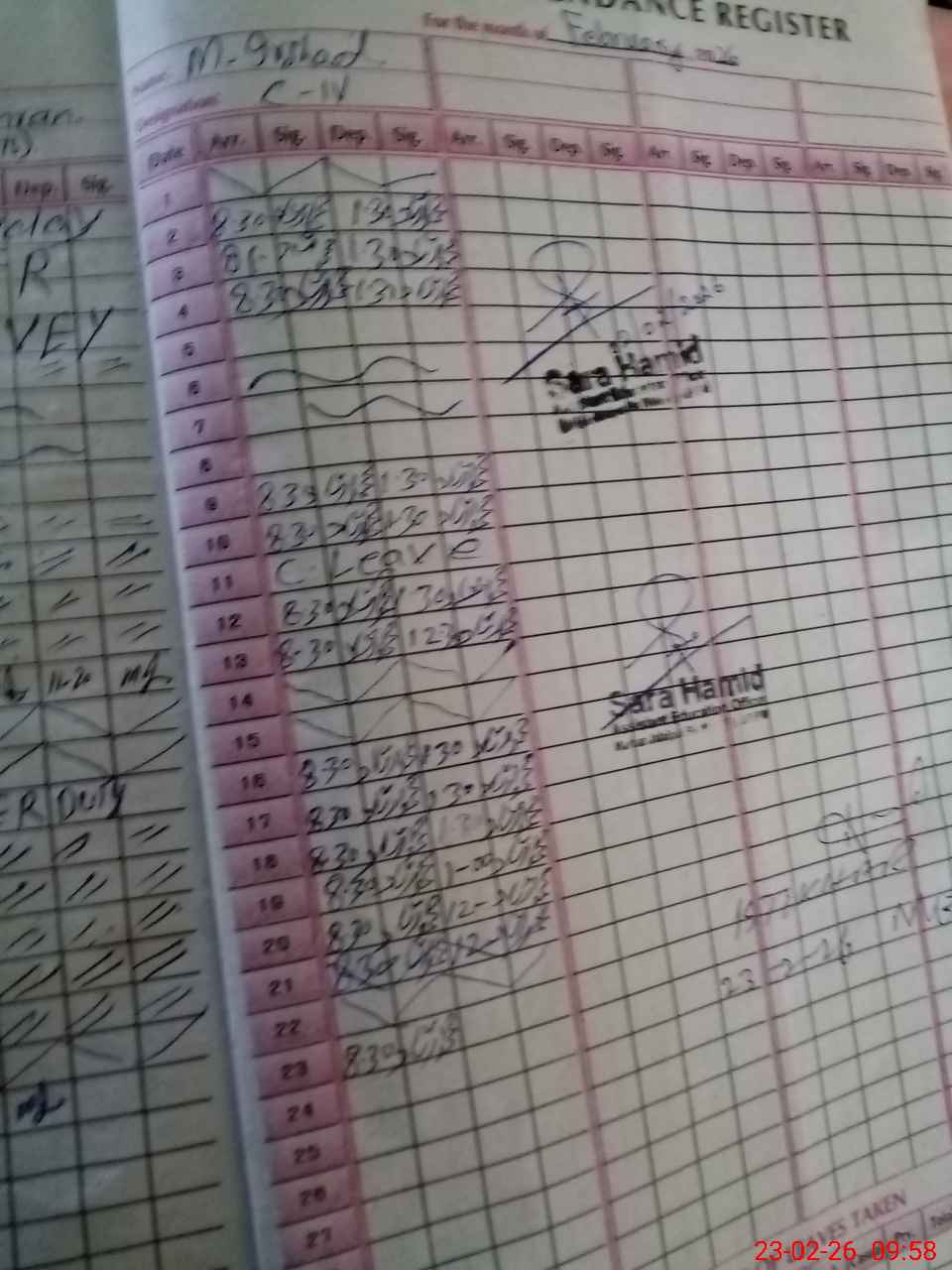 | CNIC | Full Name | Designation | R/C | Absence During Last Calender Month |