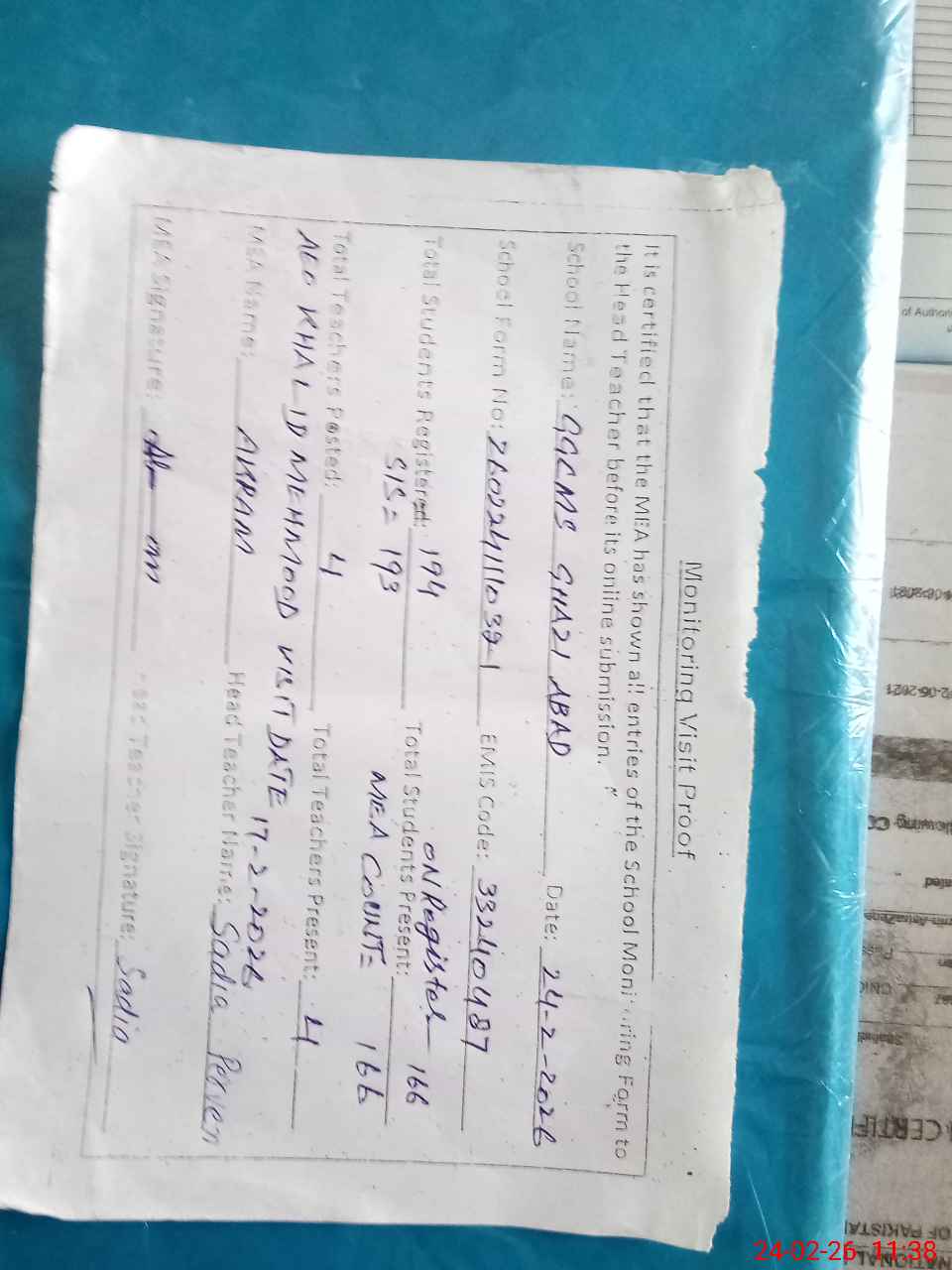 | EMIS Code: 33240487 | Name of School: GGCMS GHAZI ABAD ABDULLAH PUR | |||