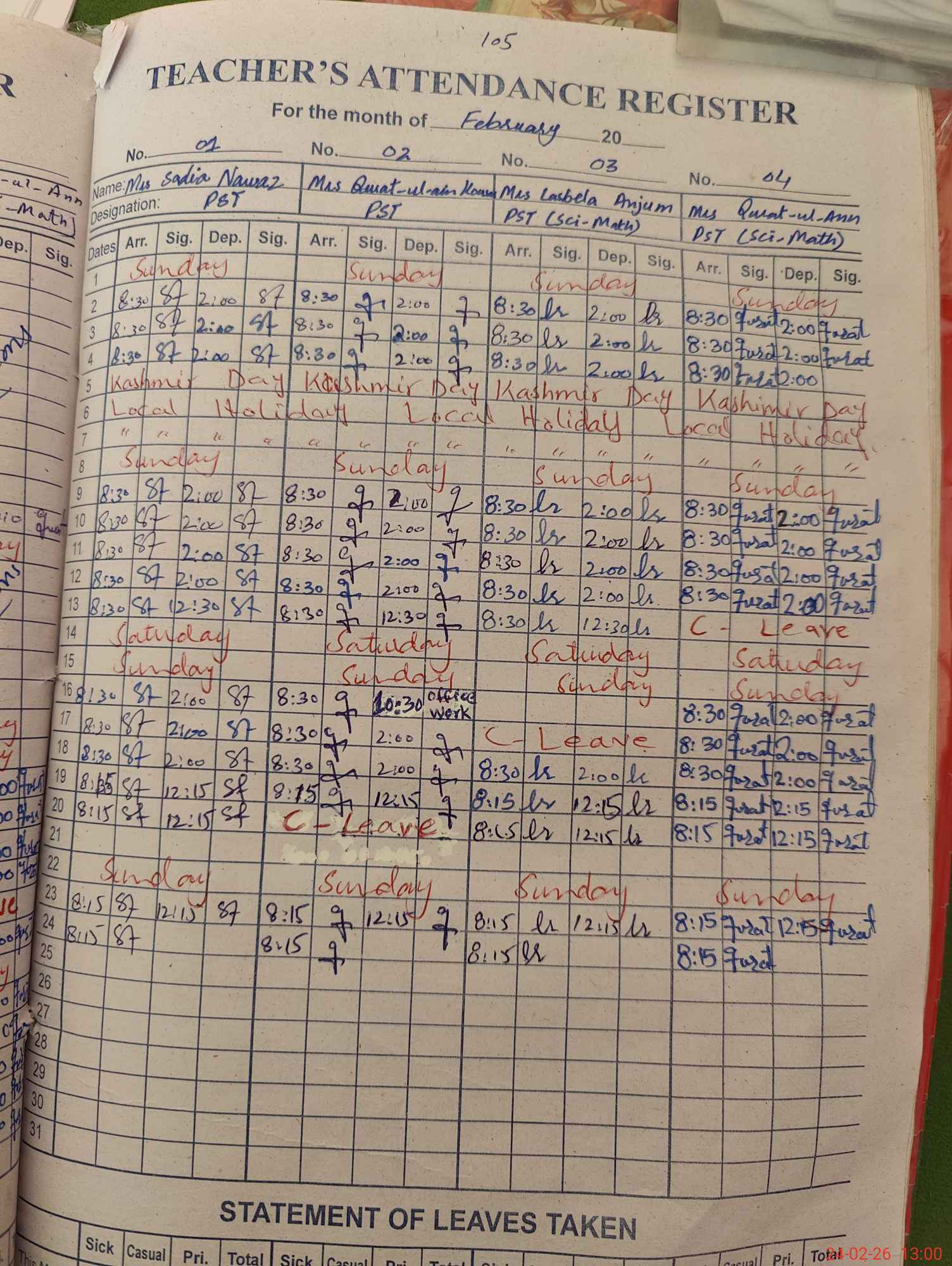 | Leave | Duty | Absent | Maternity | Medical | Ex- Pak |
