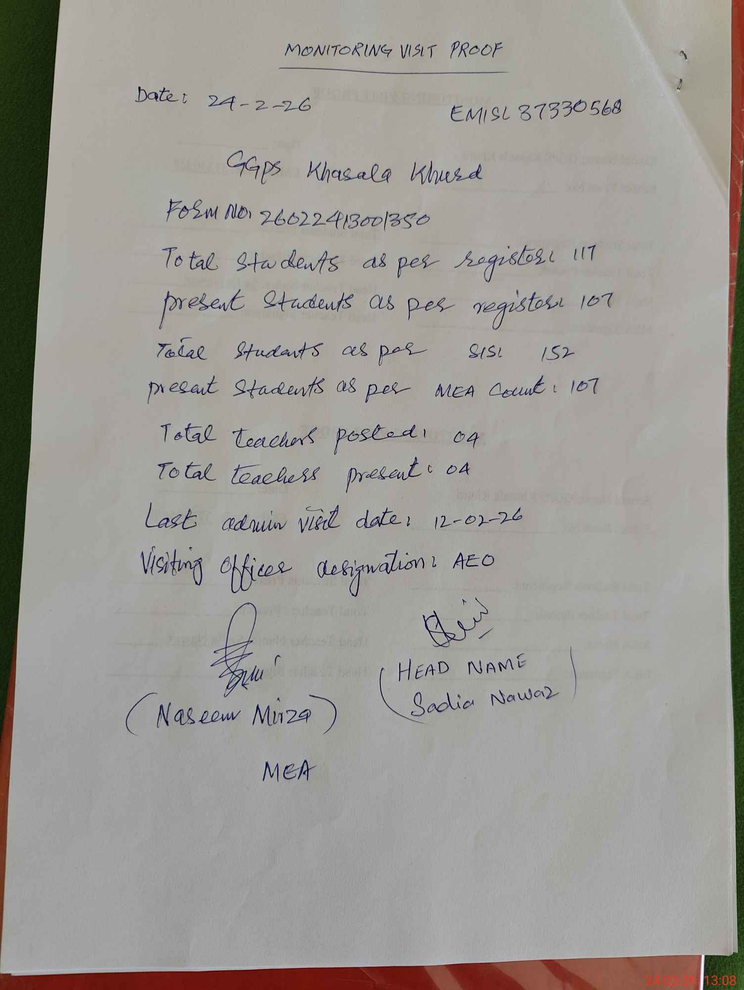 | EMIS Code: 37330568 | Name of School: GGPS KHASALA KHURD | |||