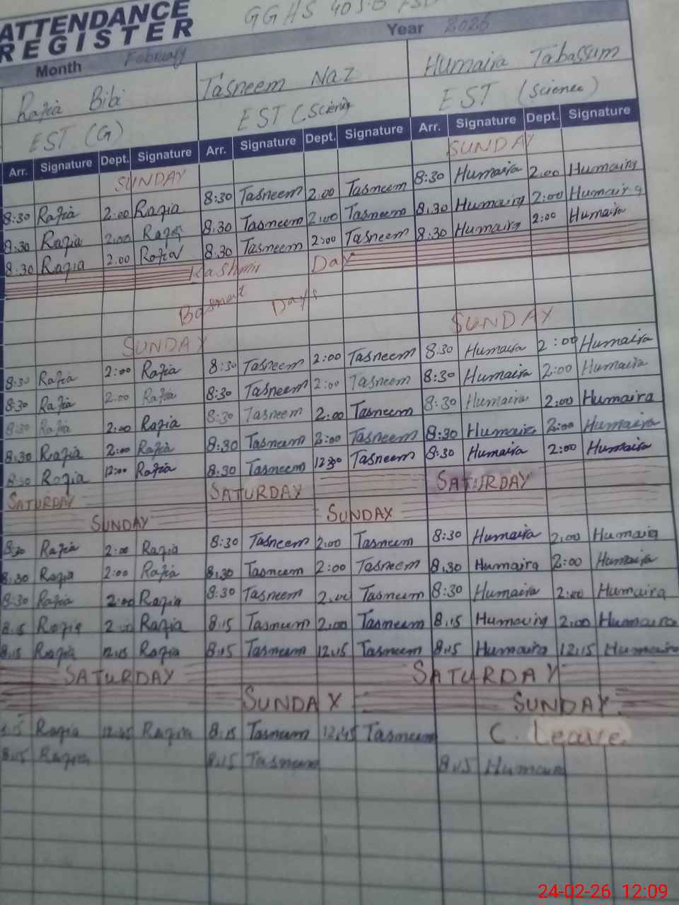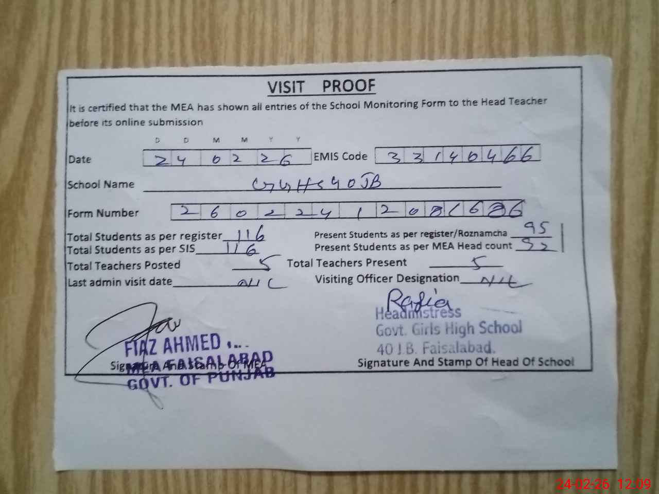 | EMIS Code: 33140466 | Name of School: GGHS CHAK NO 40 JB HALWARA | |||