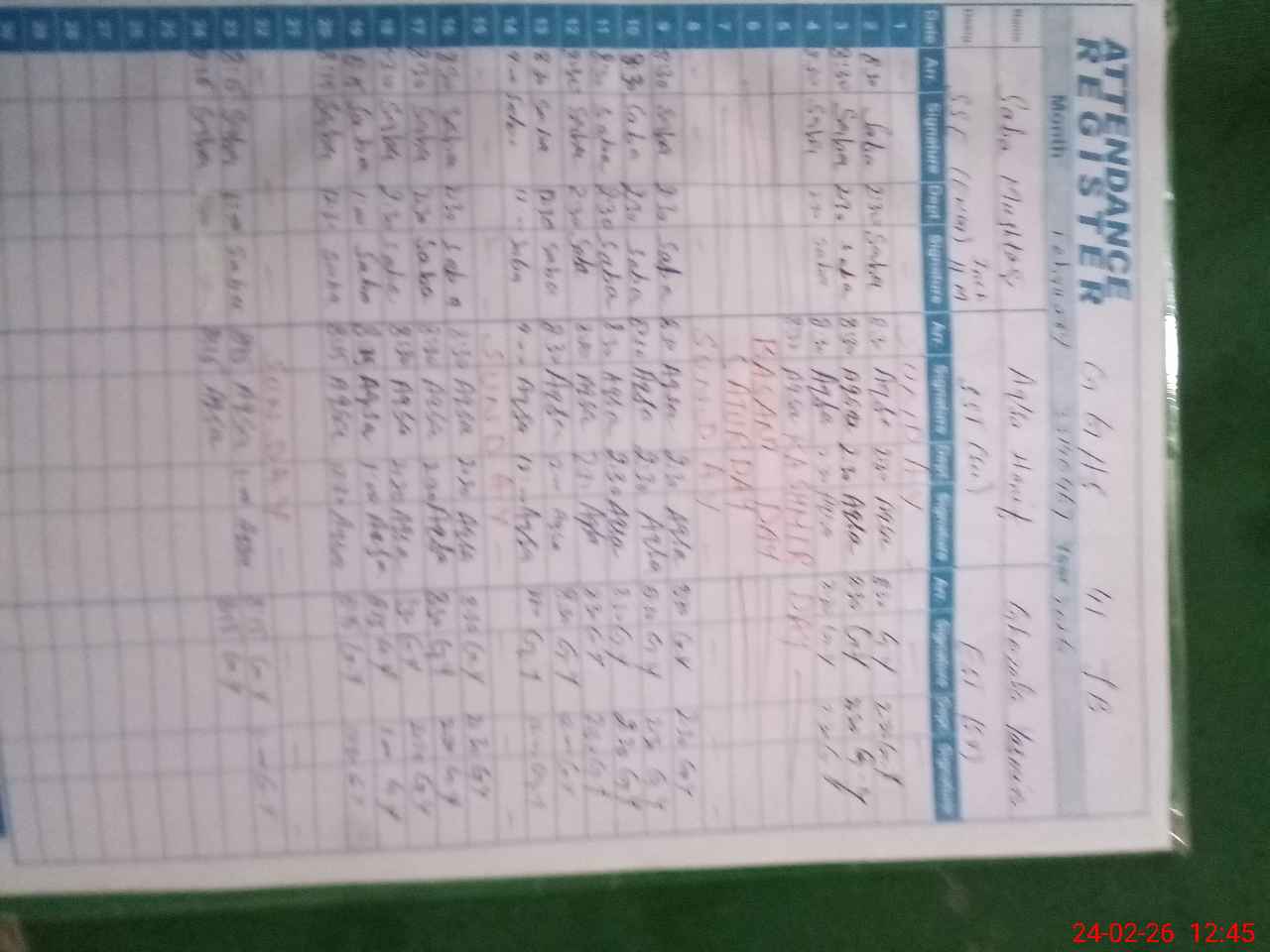 | CNIC | Full Name | Designation | R/C | Absence During Last Calender Month |