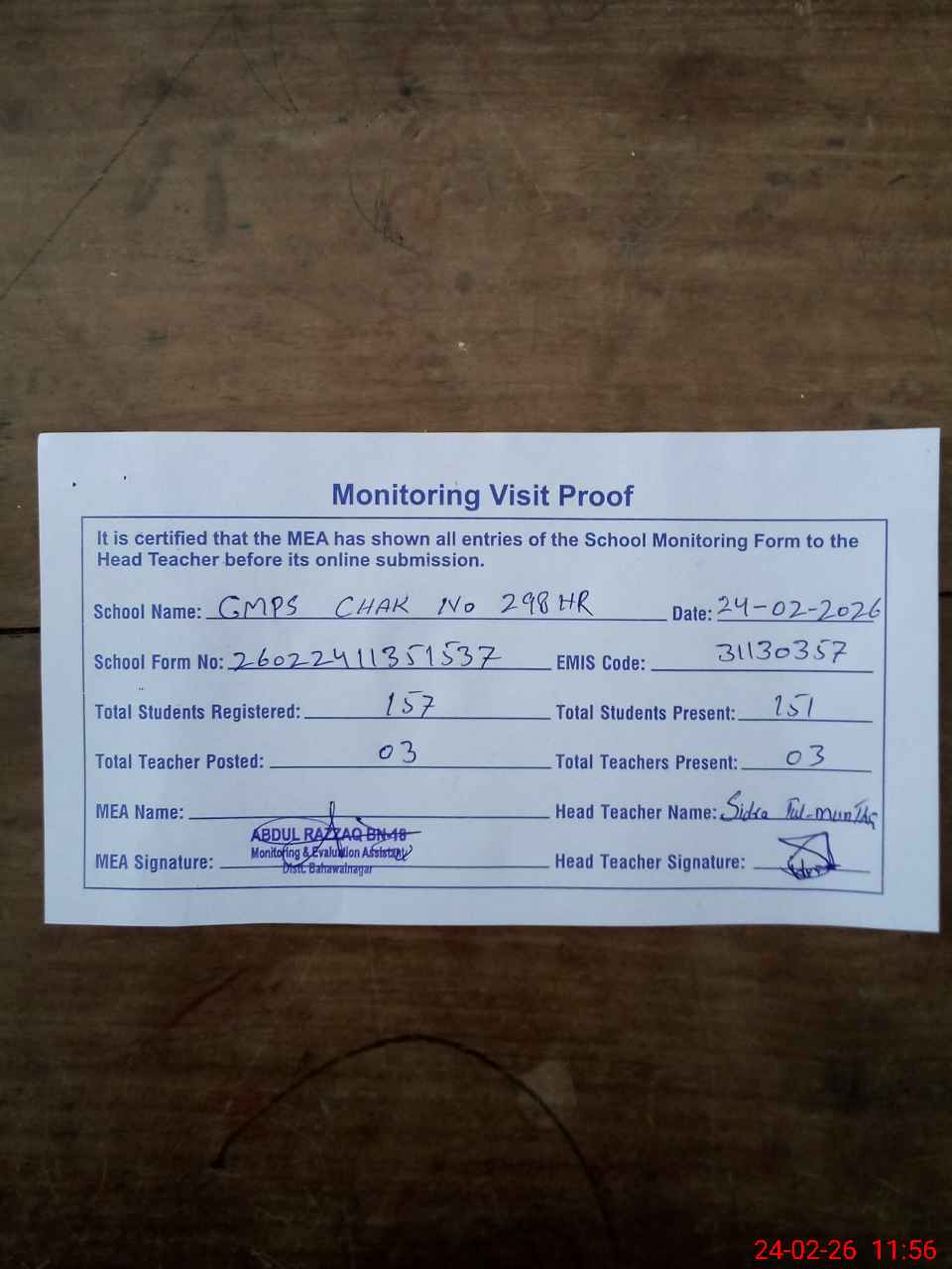 | EMIS Code: 31130357 | Name of School: GMPS 298/HR | |||