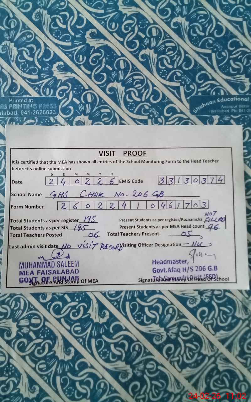 | EMIS Code: 33130374 | Name of School: GHS CHAK 206 GB SAMUNDRI FSD | |||