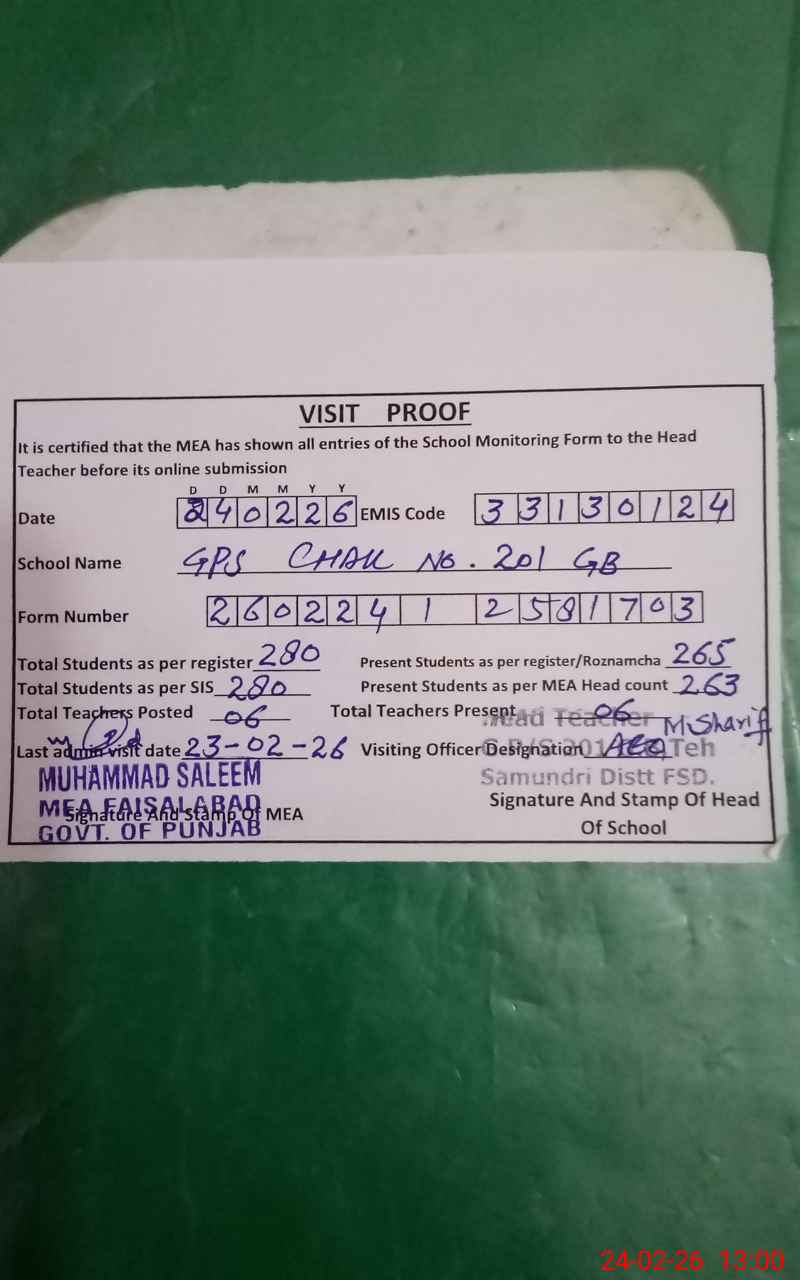 | EMIS Code: 33130124 | Name of School: GPS 201 GB | |||