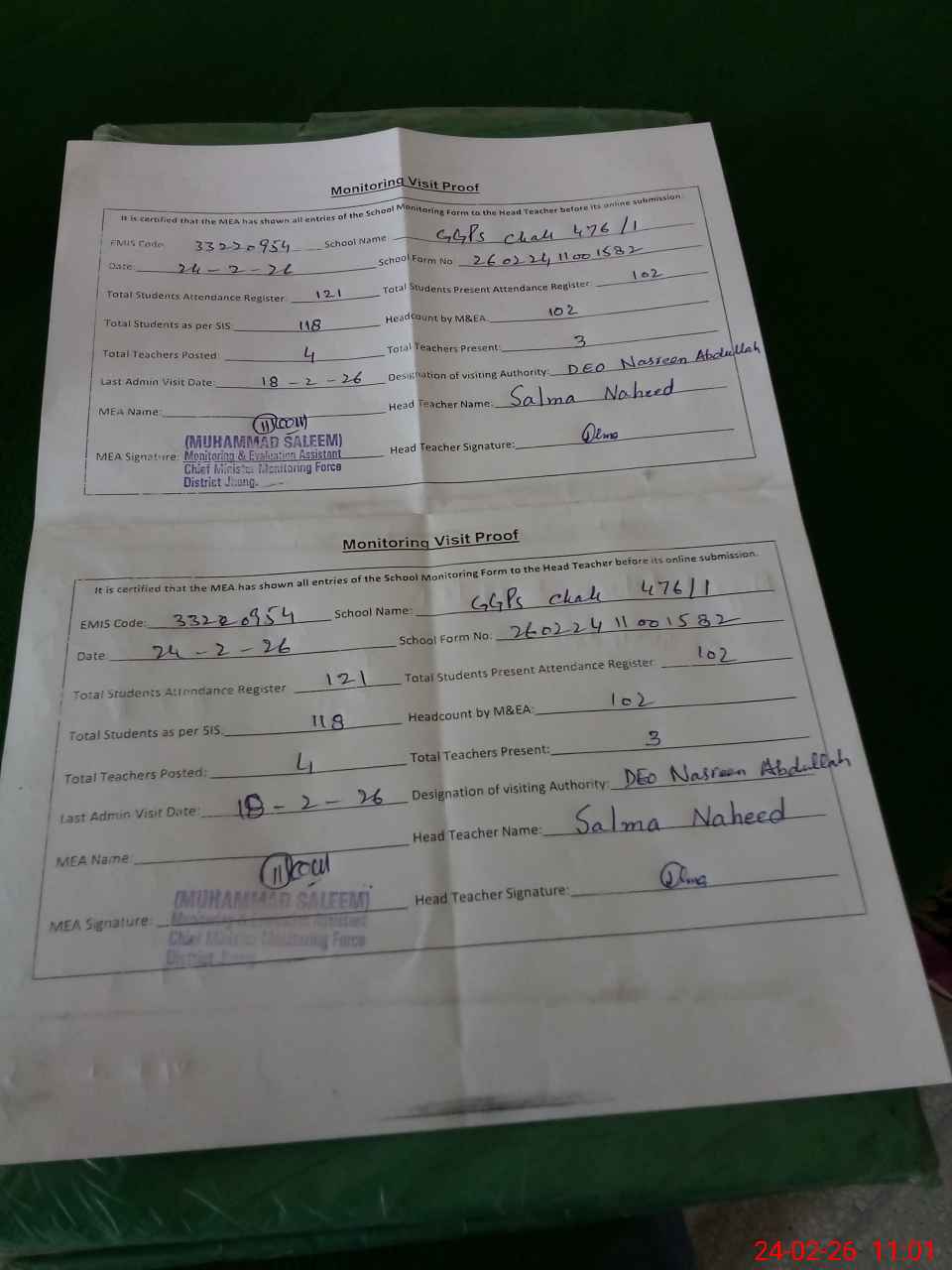 | EMIS Code: 33220954 | Name of School: GGPS CHAK 476/1 | |||