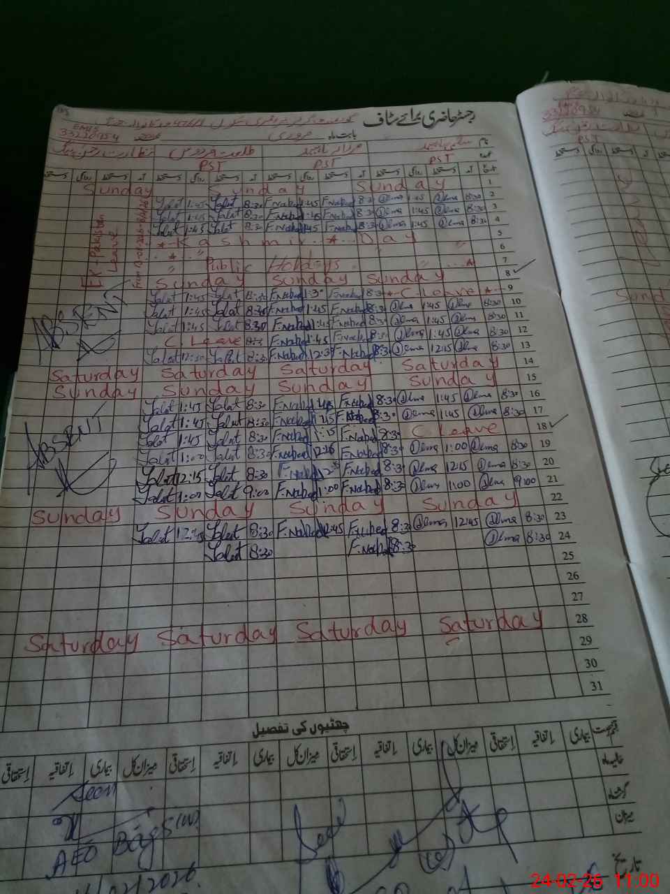 | Remarks (Use Separate Page if Required): Teacher named Nizrat Rehman PST cnic 3320244346518 absent since 9 February 2026 after ex Pakistan leave Caregiver teaching three classes ecce, nursery and one class nsb bank statements not available | |||||