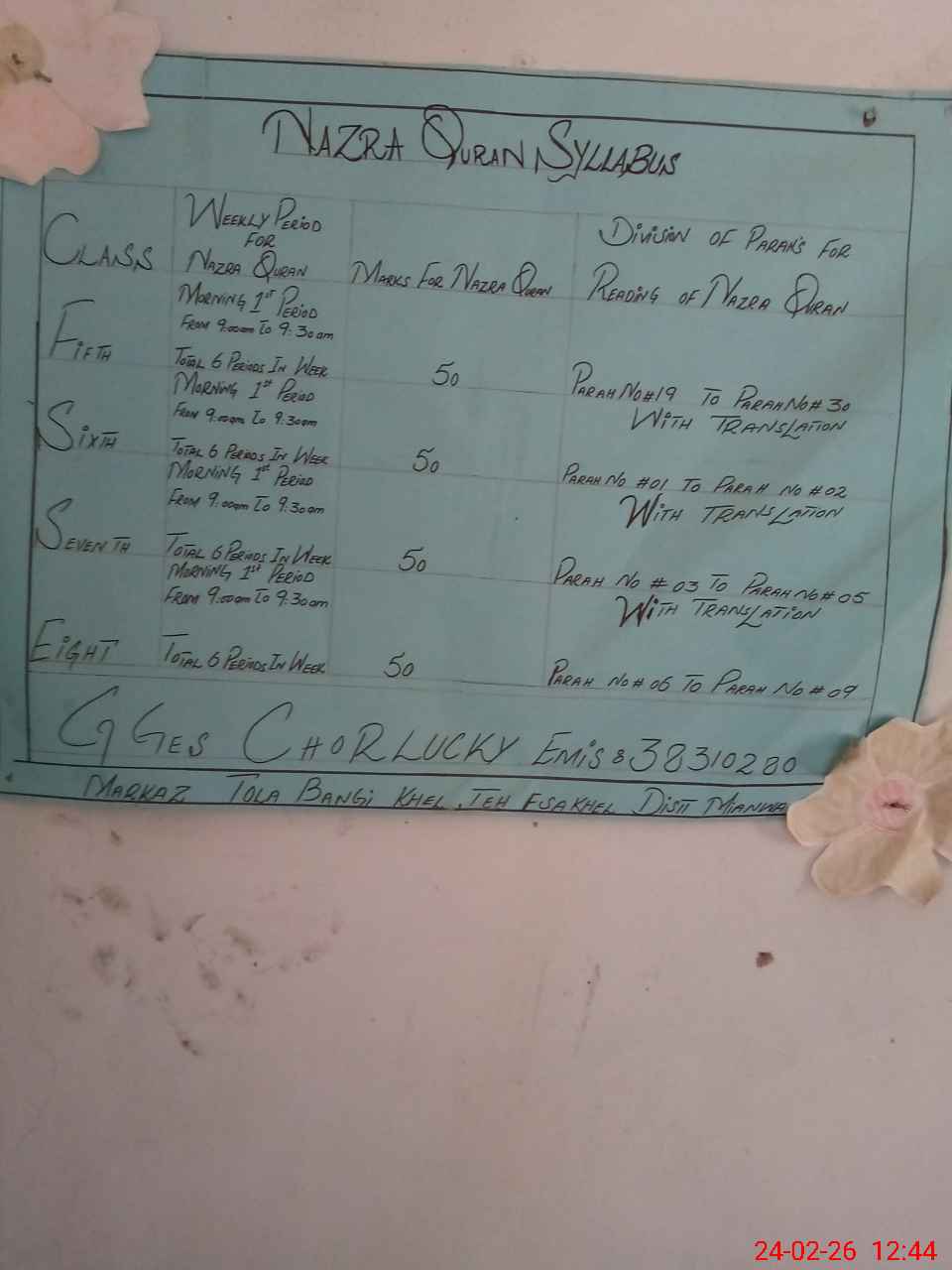 | EMIS Code: 38310280 | Name of School: GGES CHORLAKI BANGI KHEL | |||