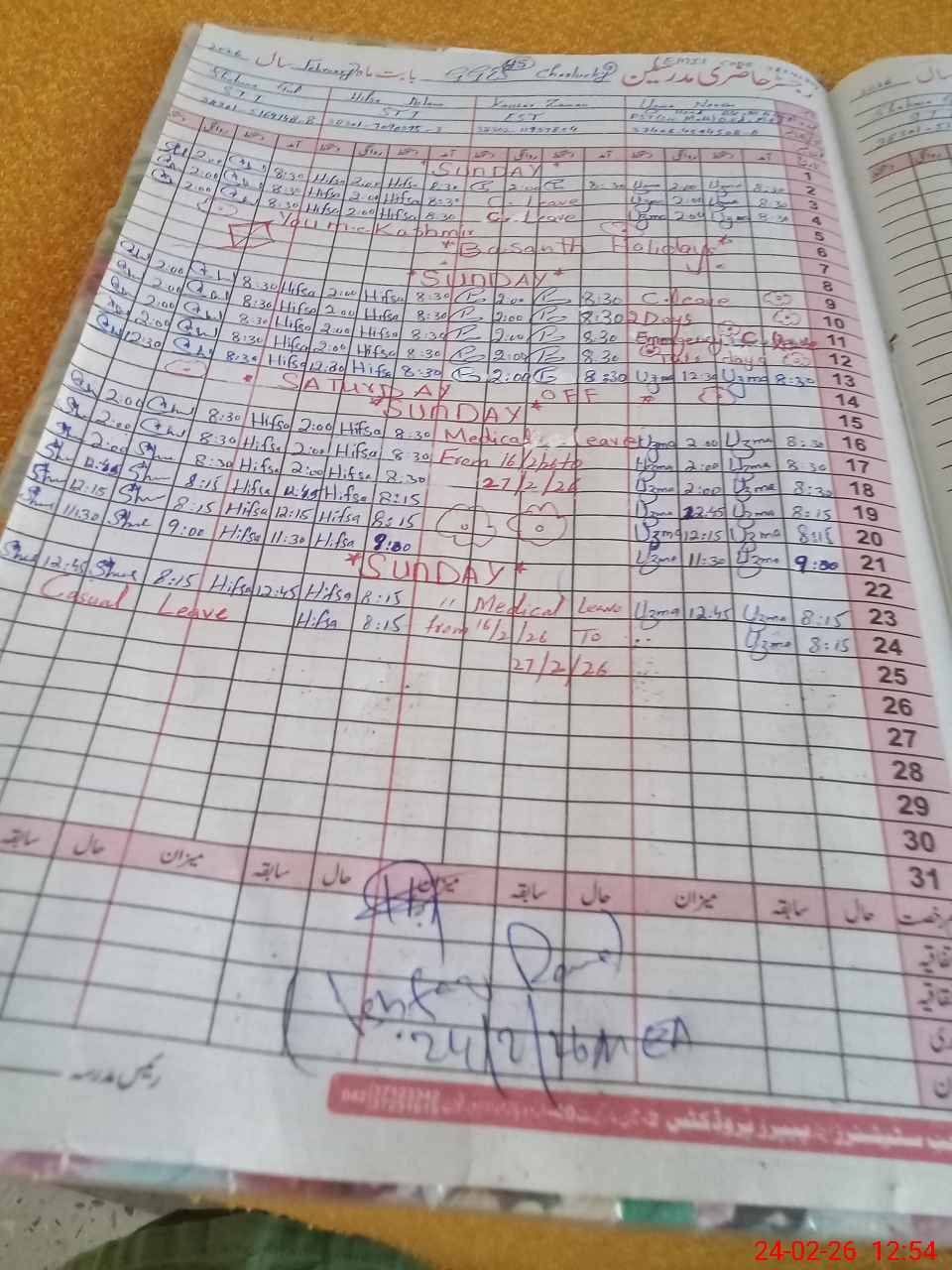 | Name: Uz**** No**** Designation: (School Headmaster's/Headmistress's) PST Phone/Cell Number: 03**** |