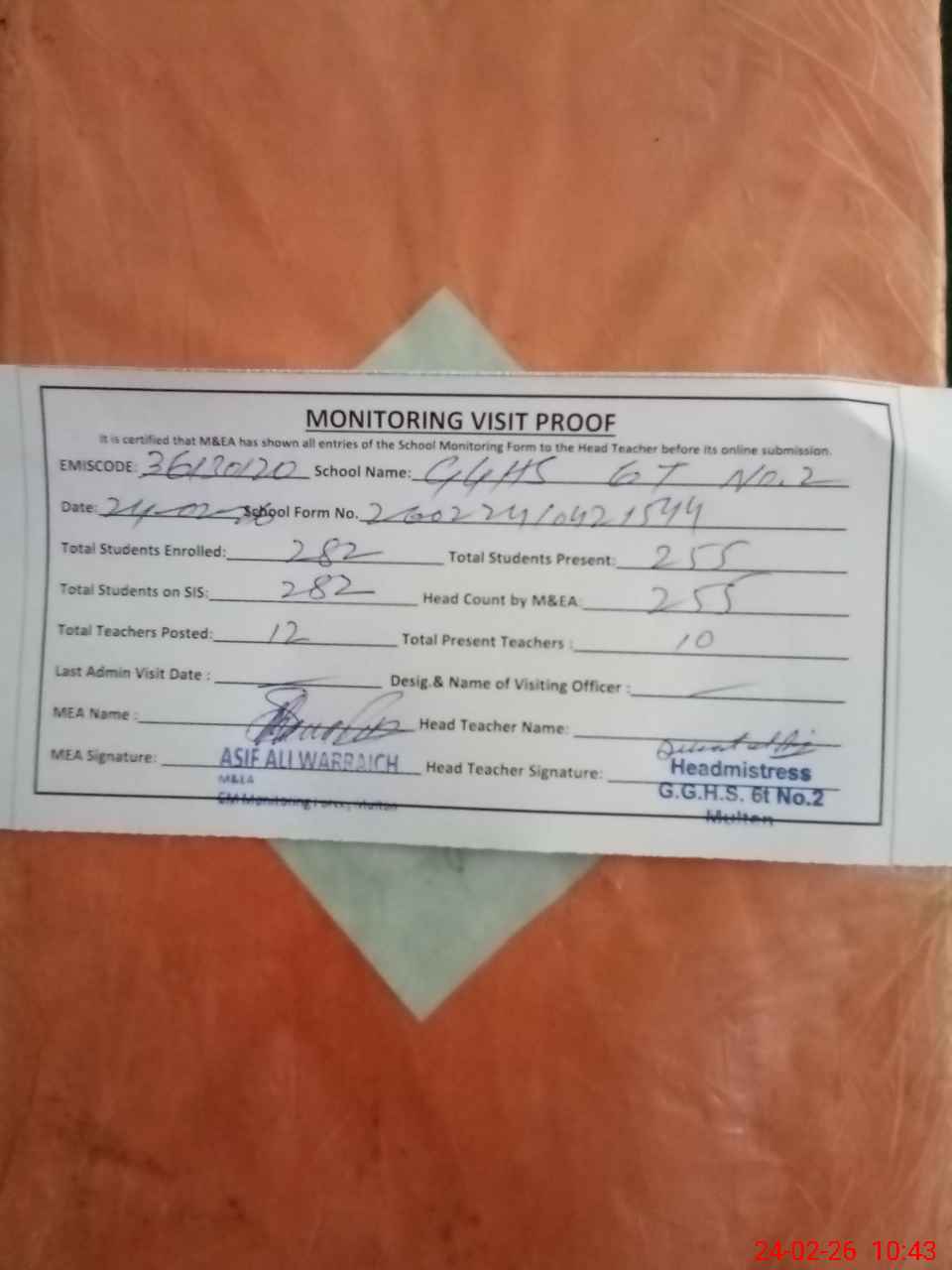 | EMIS Code: 36130120 | Name of School: GGHS 6-T NO. 2 P/O MAKHDOOM RASHEED | |||
