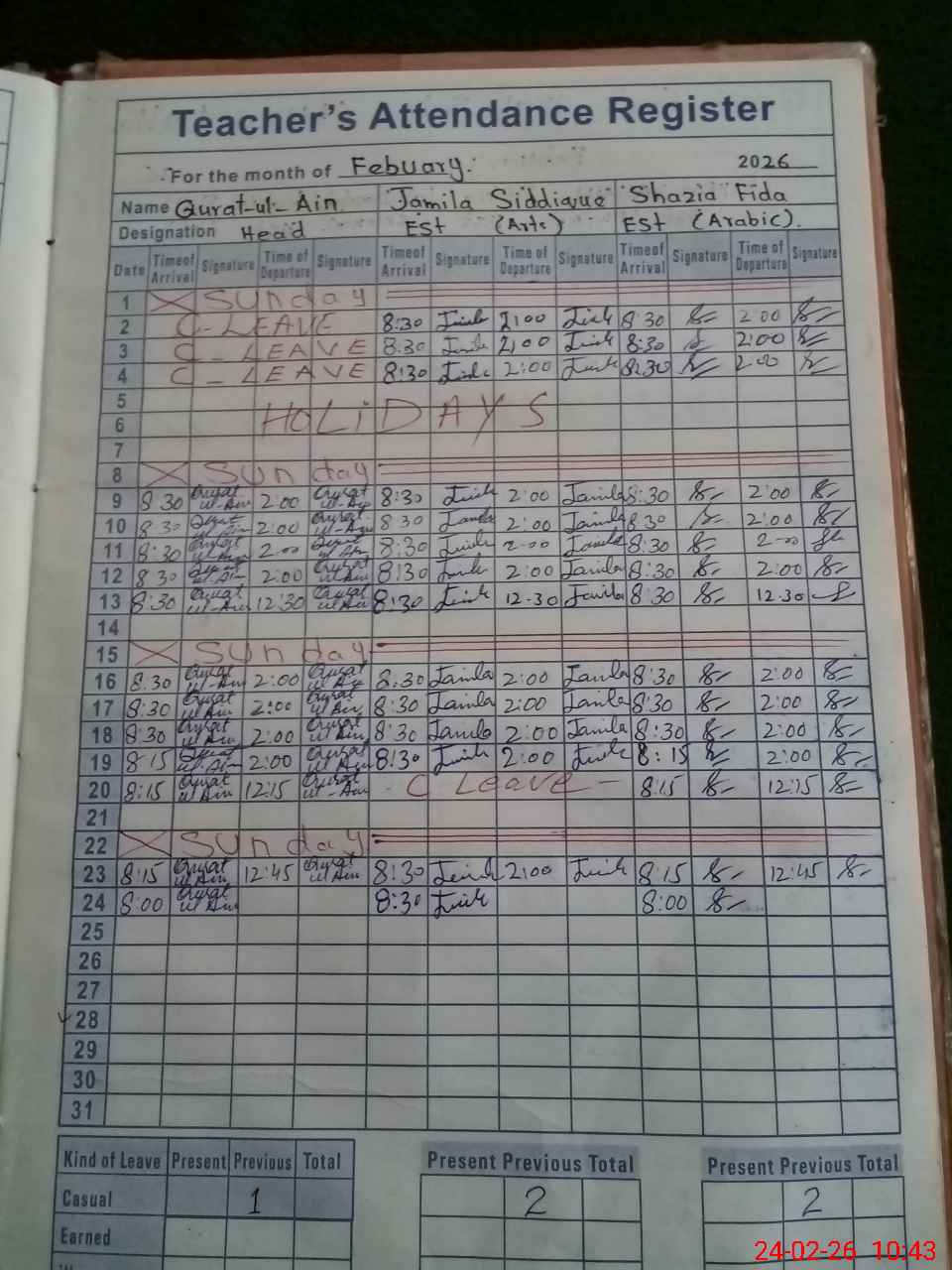 | Leave | Duty | Absent | Maternity | Medical | Ex- Pak |