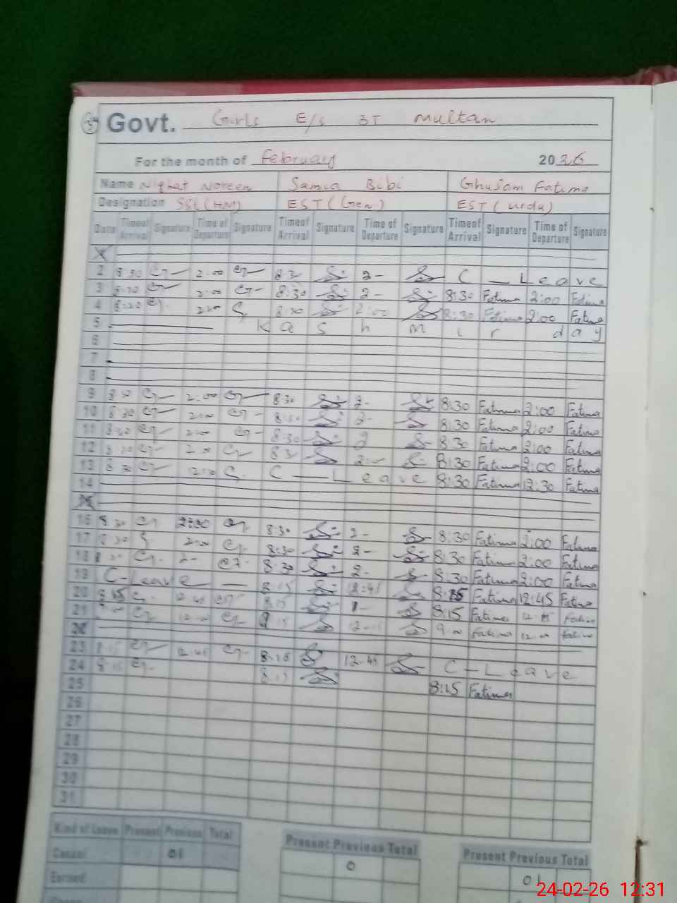 | Leave | Duty | Absent | Maternity | Medical | Ex- Pak |