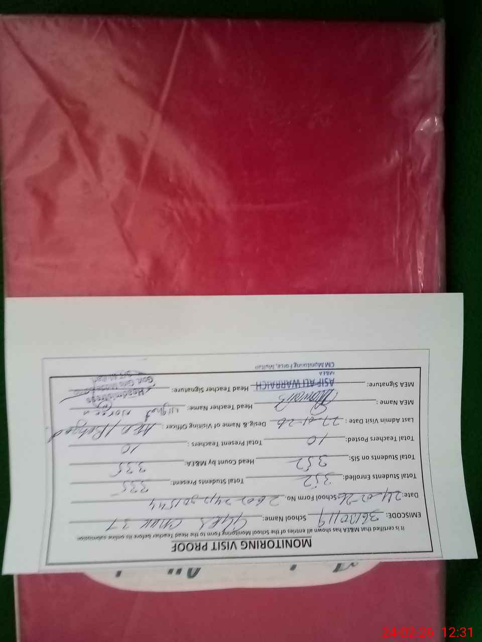 | Attendance Register | Head Teacher | MEA with School | Visit Proof |