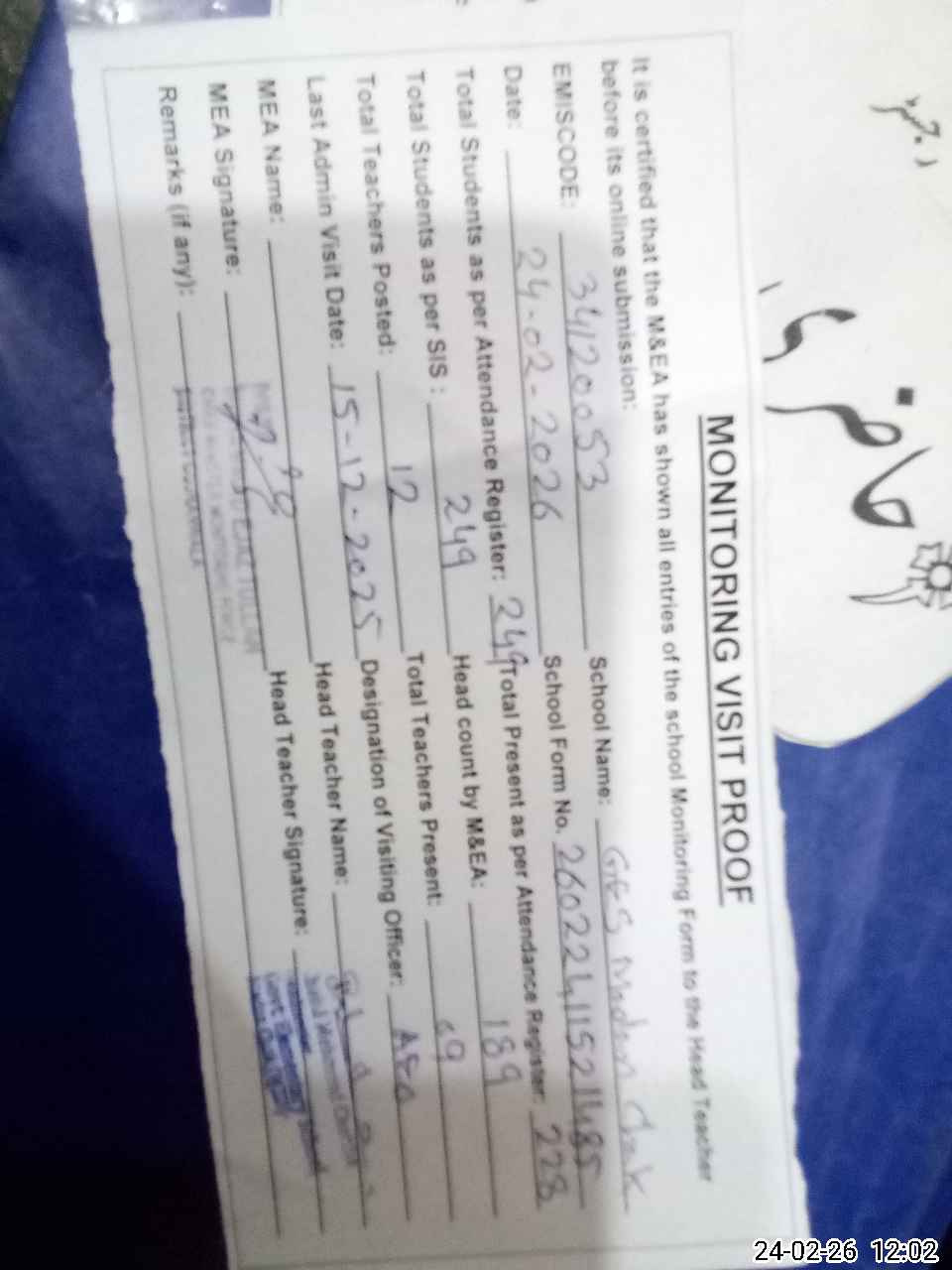 | EMIS Code: 34120053 | Name of School: GES MADAN CHAK | |||
