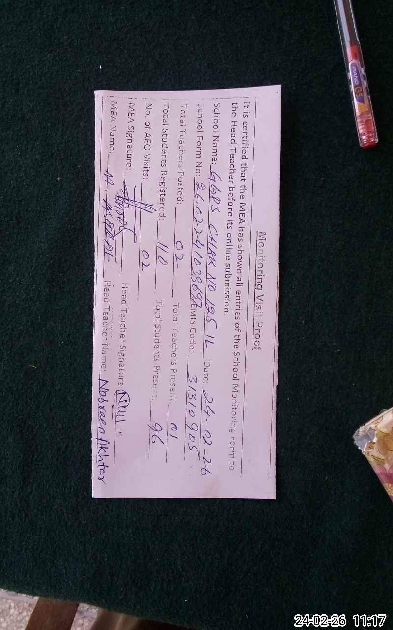 | Certified that this School was Inspected by the Undersigned MEA/DMO Today and the Information Stated Above is as Per Record. | |||||