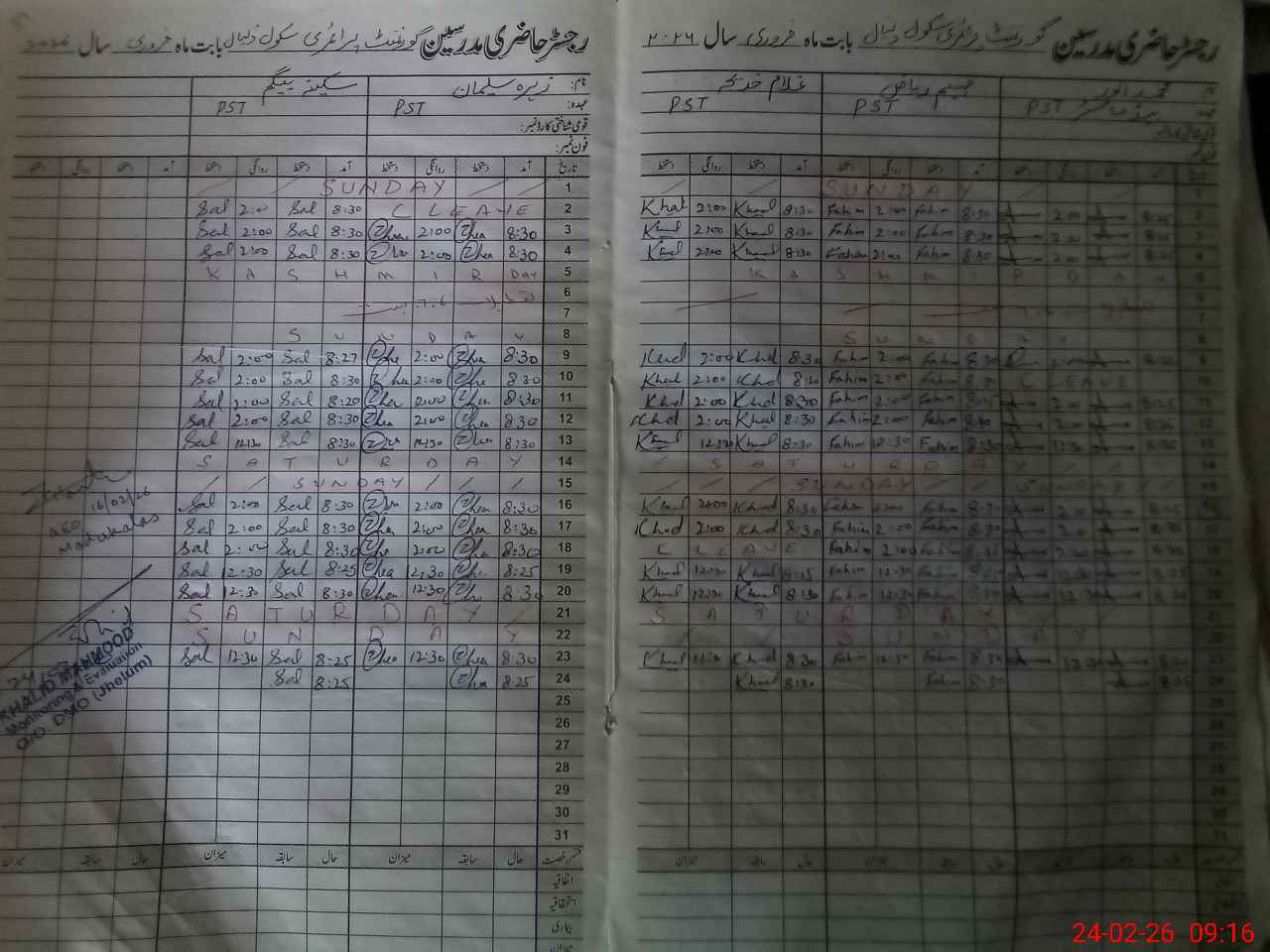| CNIC | Full Name | Designation | R/C | Absence During Last Calender Month |