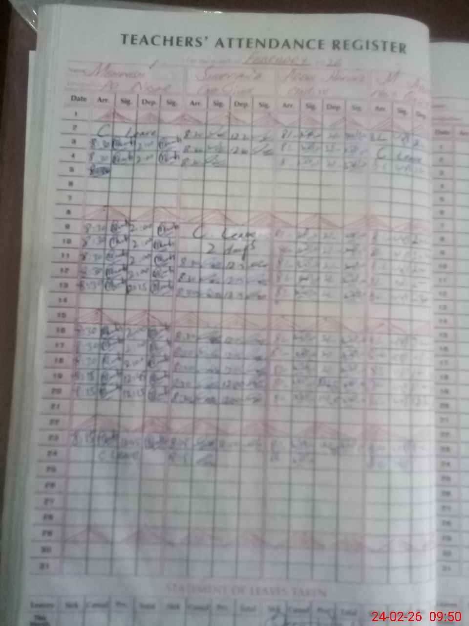 | Leave | Duty | Absent | Maternity | Medical | Ex- Pak |