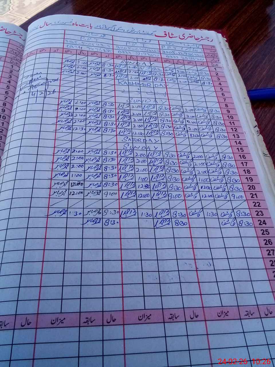 | CNIC | Full Name | Designation | R/C | Absence During Last Calender Month |