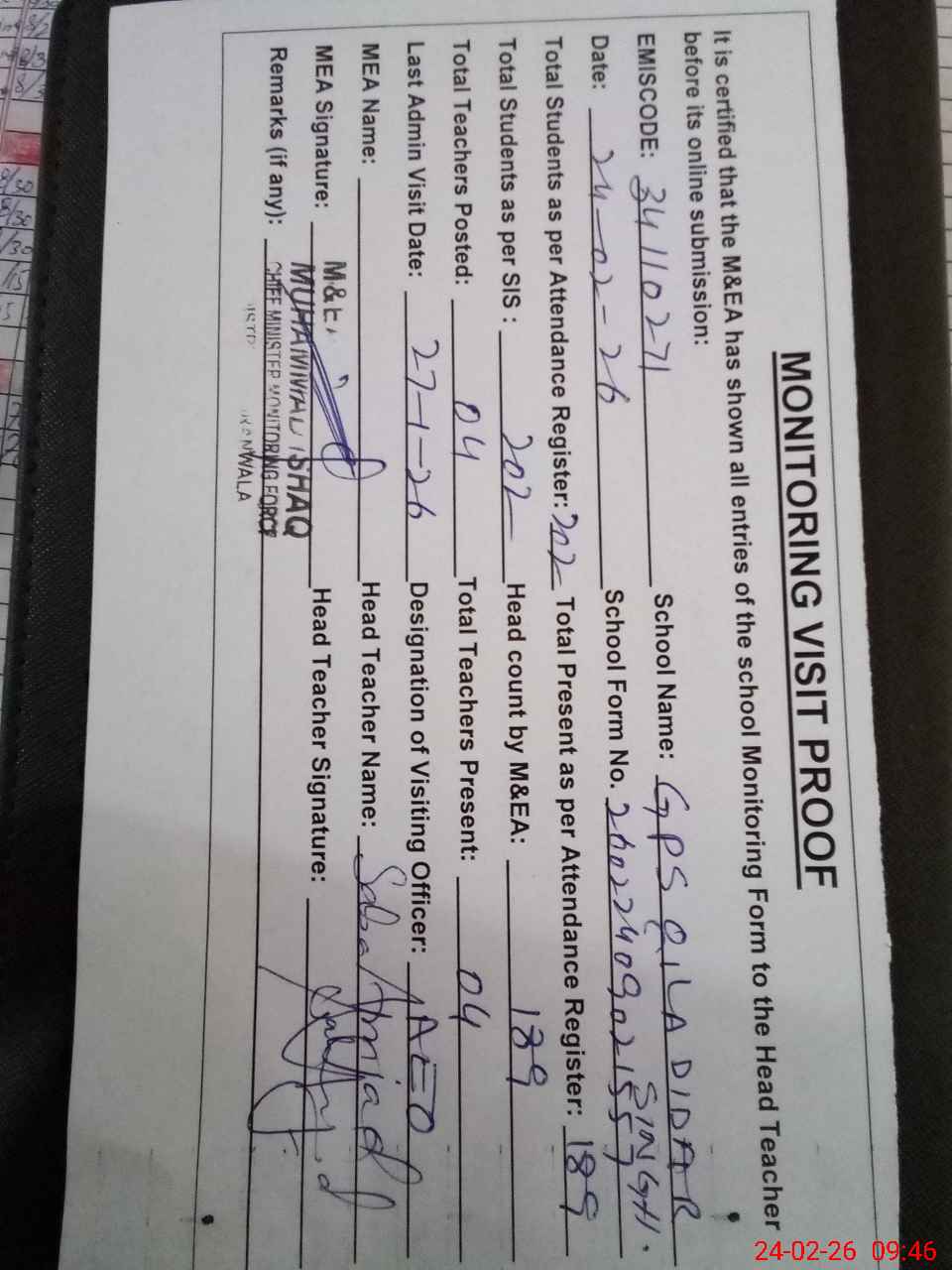 | EMIS Code: 34110271 | Name of School: GPS QILA DIDAR SINGH NO.3 | |||