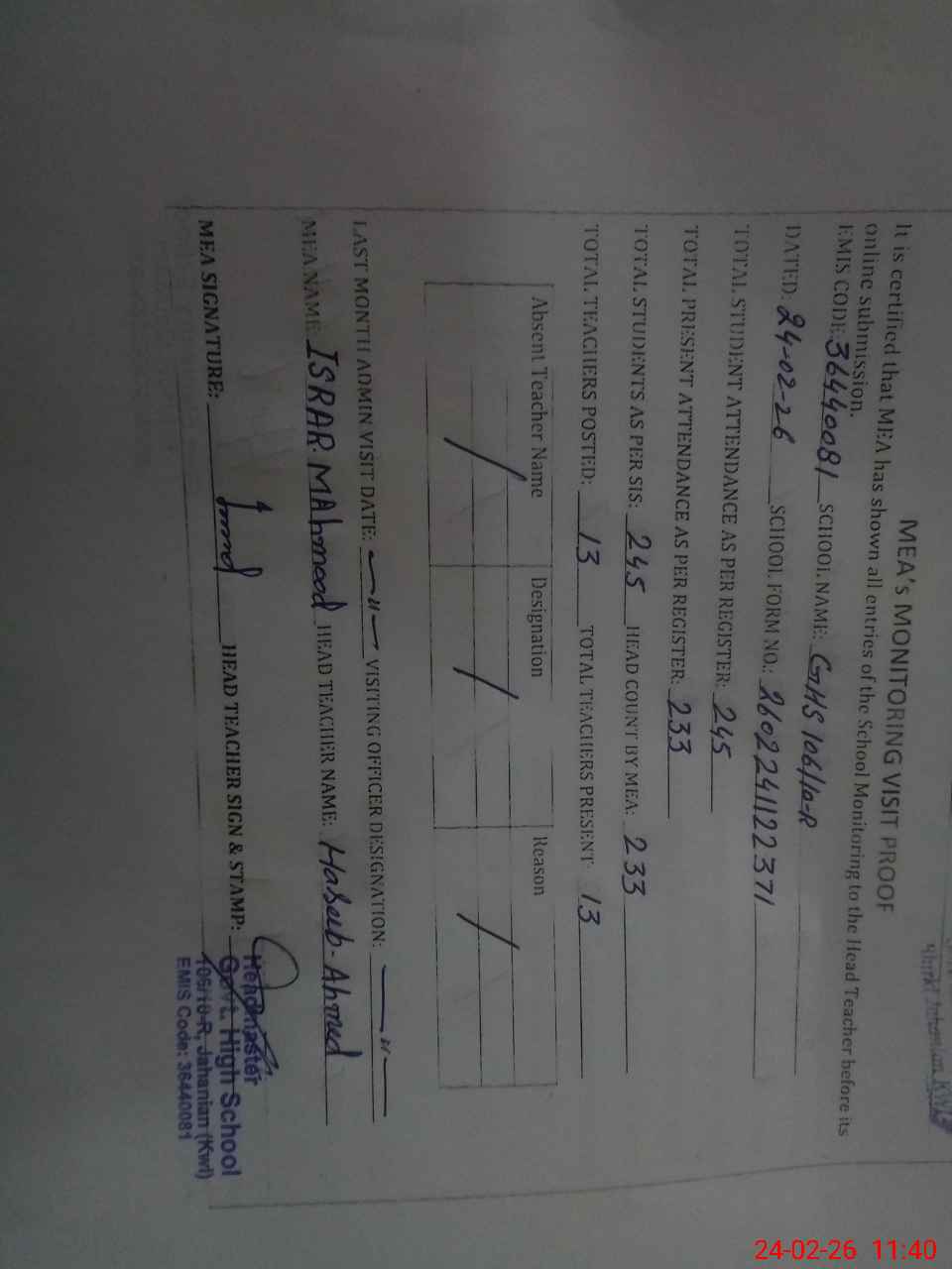 | EMIS Code: 36440081 | Name of School: GHS 106/10-R, JAHANIAN | |||
