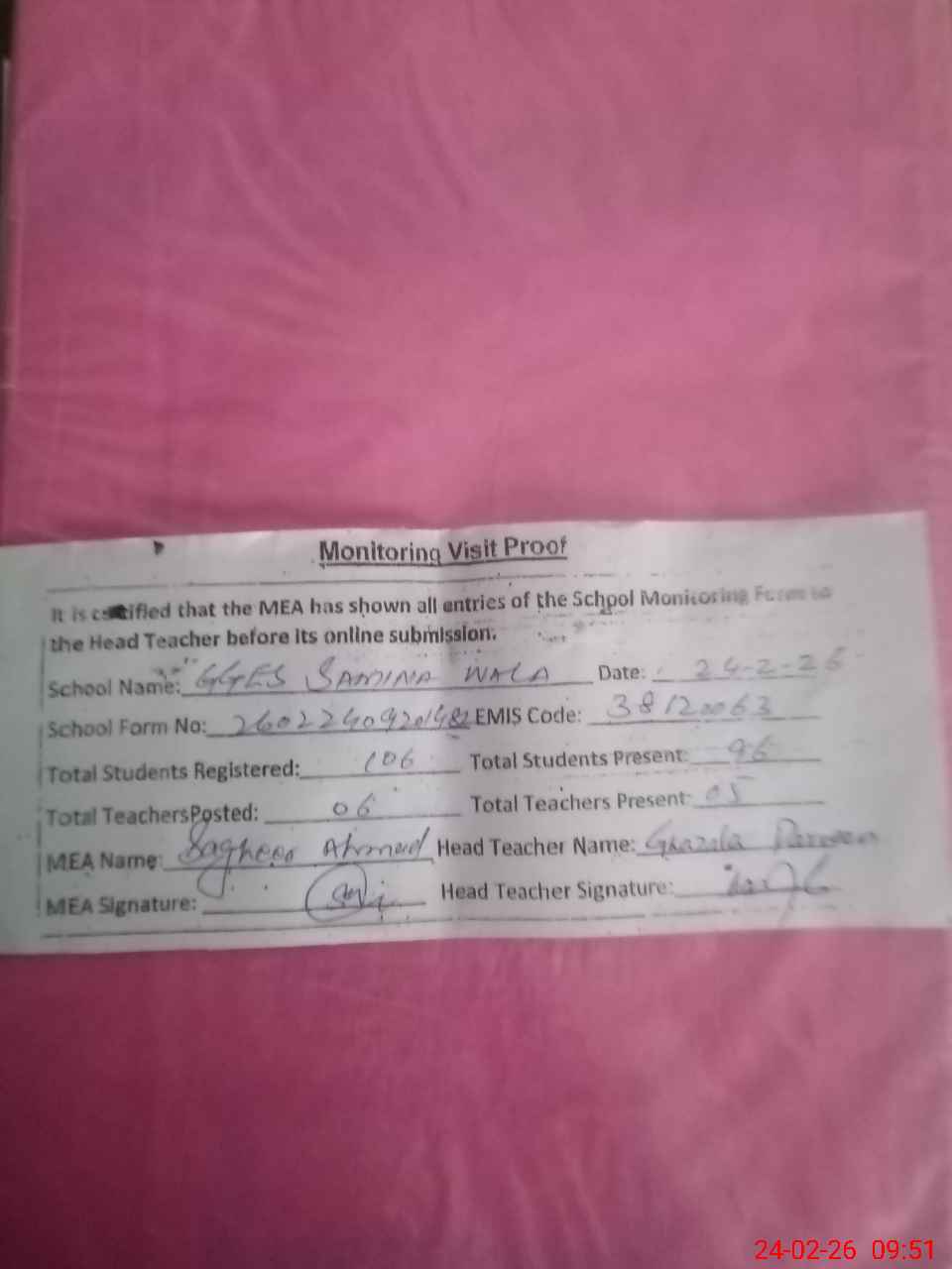 | EMIS Code: 38120063 | Name of School: GGES SAMINA WALA | |||