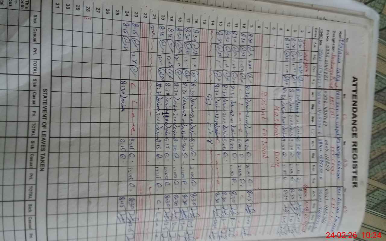 | CNIC | Full Name | Designation | R/C | Absence During Last Calender Month |