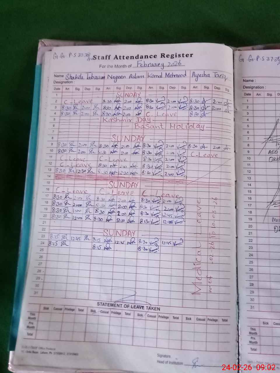 | Leave | Duty | Absent | Maternity | Medical | Ex- Pak |
