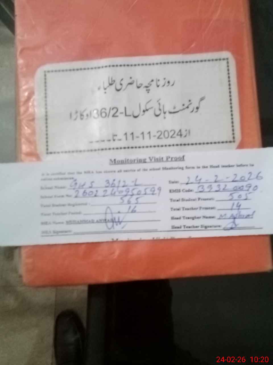 | EMIS Code: 39320090 | Name of School: GHS CHAK NO. 36/2-L | |||