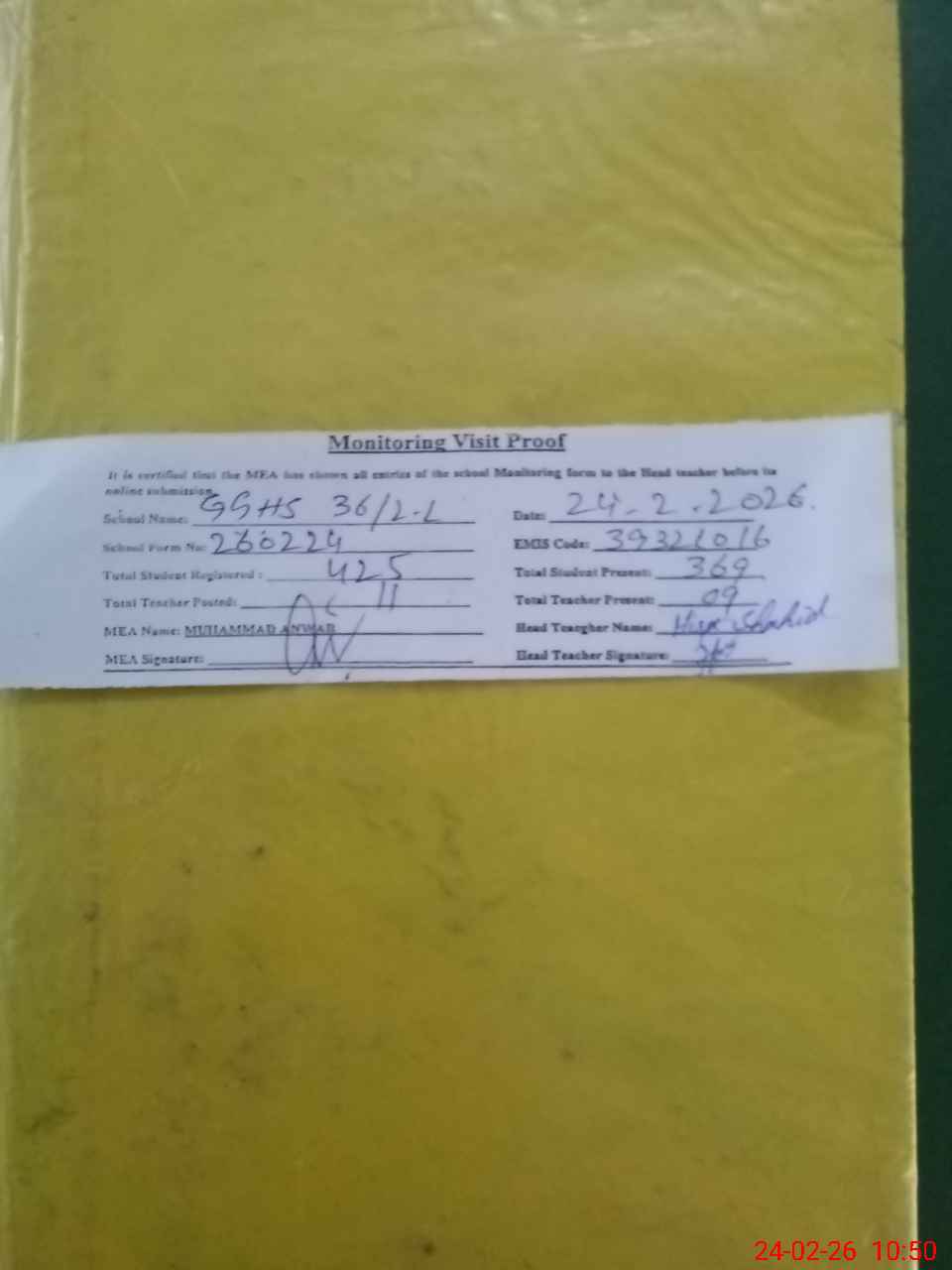 | EMIS Code: 39321016 | Name of School: GGHS CHAK NO. 36/2-L | |||