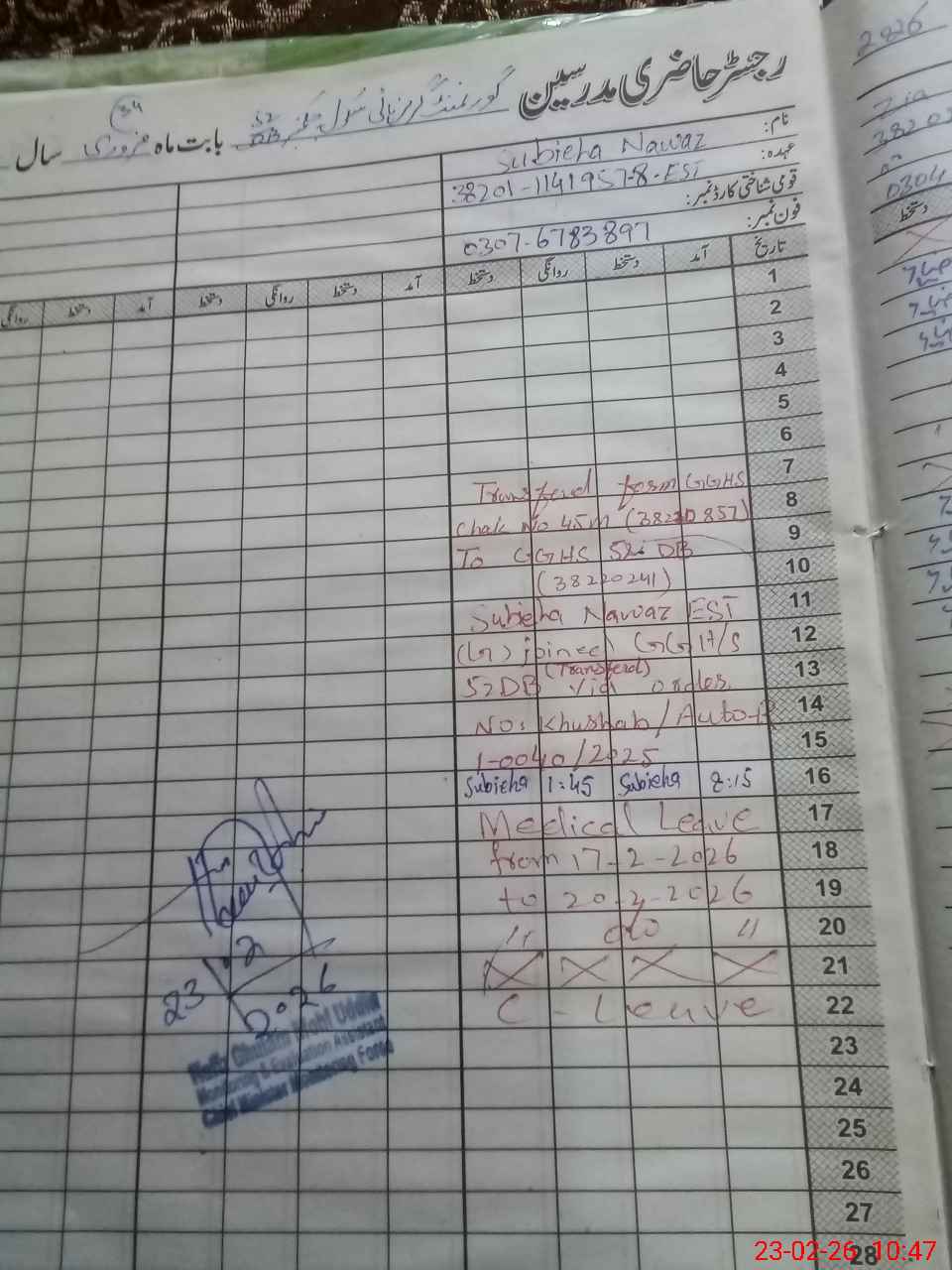 | Name: NA**** BI**** Designation: (School Headmaster's/Headmistress's) SSE BIO Phone/Cell Number: 03**** |
